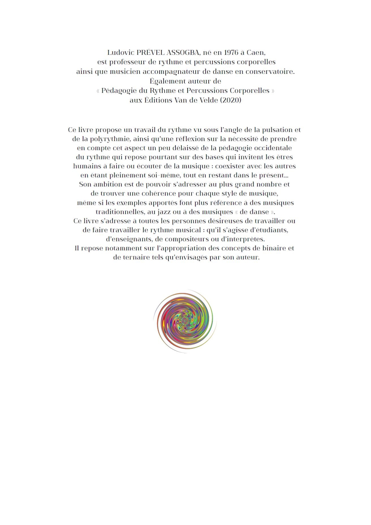 Ce livre propose un travail du rythme vu sous l'angle de la pulsation et de la polyrythmie, ainsi qu'une réflexion sur la nécessité de prendre en compte cet aspect un peu délaissé de la pédagogie occidentale du rythme qui repose pourtant sur des bases qui invitent les êtres humains à faire ou écouter de la musique: coexister avec les autres en étant pleinement soi-même, tout en restant dans le présent... Son ambition est de pouvoir d'adresser au plus grand nombre et de trouver une cohérence pour chaque style de musique, même si les exemples apportés font plus référence à des musiques traditionnelles, au jazz ou à des musiques "de danse". Ce livre s'adresse à toutes les personnes de travailler ou de faire travailler le rythme musical: qu'il s'agisse d'étudiants, d'enseignants, de compositeurs ou d'interpètes. Il repose notamment sur l'appropriation des concepts de binaire et de ternaire tels qu'envisagés par l'auteur.