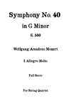 Symphony No. 40 in G minor k. 550 - I. Allegro Molto - W. A. Mozart - For String Quartet (Full Score and Parts)