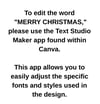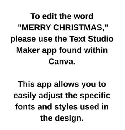 Easy Text Customization: To edit the words, including "MERRY CHRISTMAS," please use the Text Studio Maker app found within Canva.
