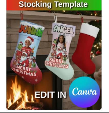 ✨ Personalized Christmas Stocking Template (Editable Canva Link) ✨