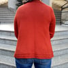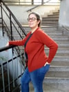 Lineare ed elegante, questo cardigan top down usa un’interessante tecnica di aumenti che crea l’illusione di maglie passate. Le maniche e la sciancratura sono invece marcate da vere maglie passate che ne delineano la sagomatura. La manica è sagomata con diminuzioni eseguite, insolitamente, soprattutto sulla parte superiore e visibile della manica, una diminuzione doppia centrata. Poche diminuzioni extra sono posizionate sotto al braccio. Tutti i bordi del cardigan sono lavorati nel motivo a “Foglie a bassorilievo” trovato in una raccolta di punti degli anni Settanta. Si tratta di una facile combinazione di drutto e rovescio che si mantiene piatta, anche se non è elastica e non restringe o polsini. Ho usato lo stesso ferro per i bordi e per il resto del capo, ma se preferite bordi più compatti potete usare un ferro leggermente più sottile.