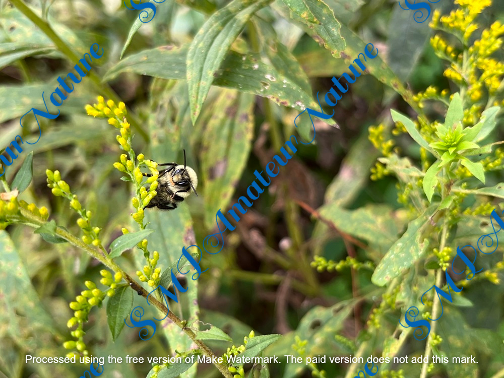 Amateur photograph of a Common Eastern Bumblebee (Bombus impatiens) male foraging on yellow flowers. Image taken in Virginia, USA. Image pixels 3024x4032. Image easily resized as required for buyer needs. Purchase gives image without any watermark.