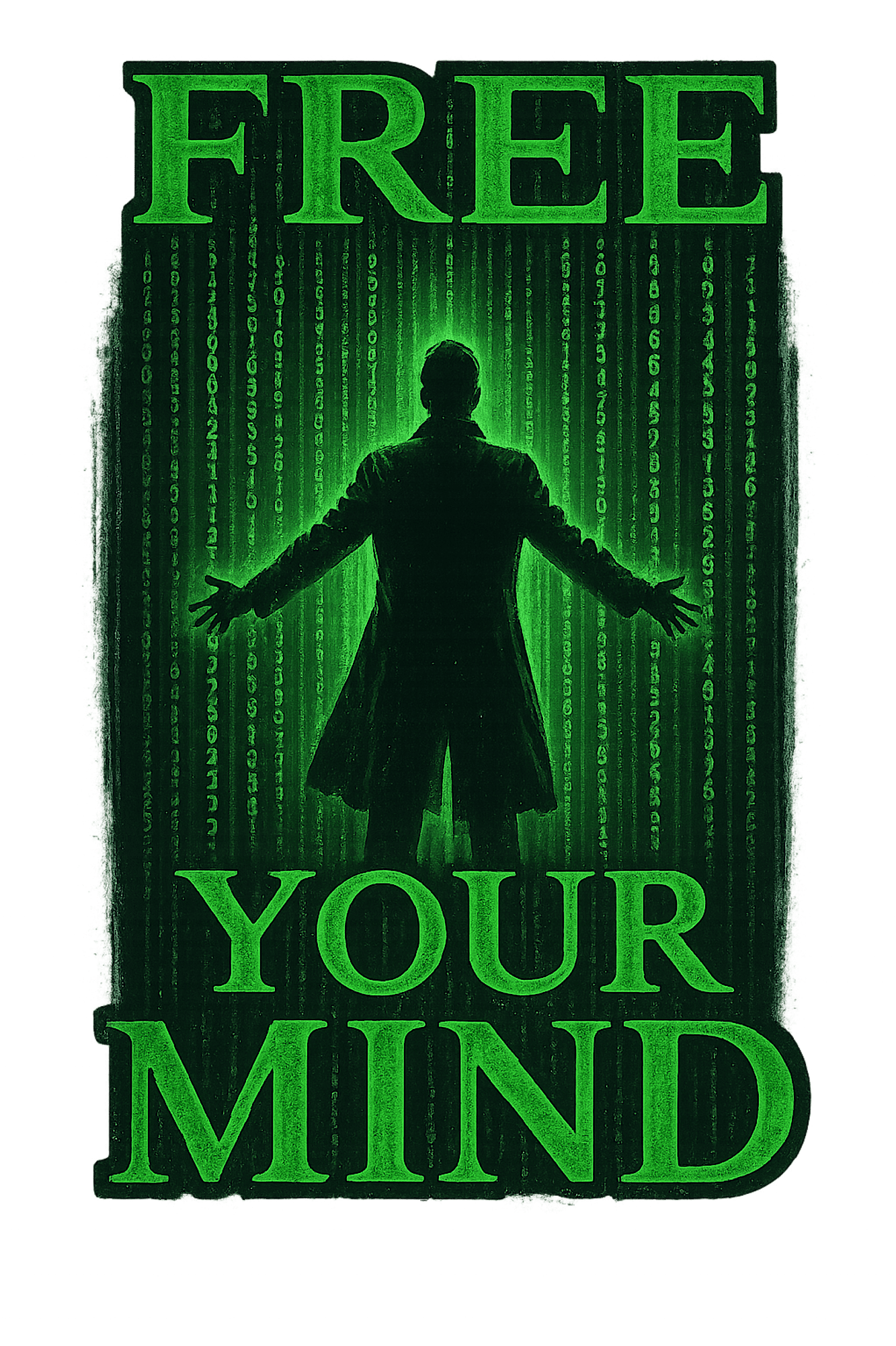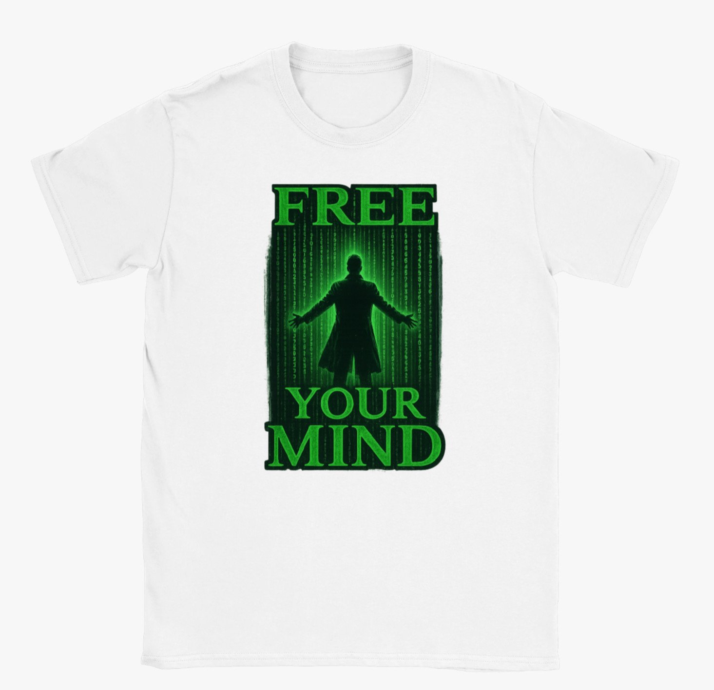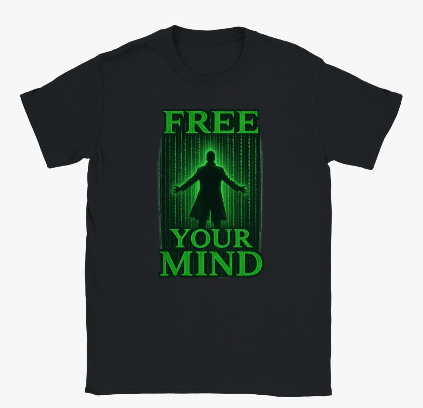 Step into a higher level of awareness with the “Free Your Mind” t-shirt - a bold statement for thinkers, dreamers, and truth seekers. Featuring a glowing green digital design inspired by the concept of breaking free from illusion, this shirt reminds you that reality begins in the mind,