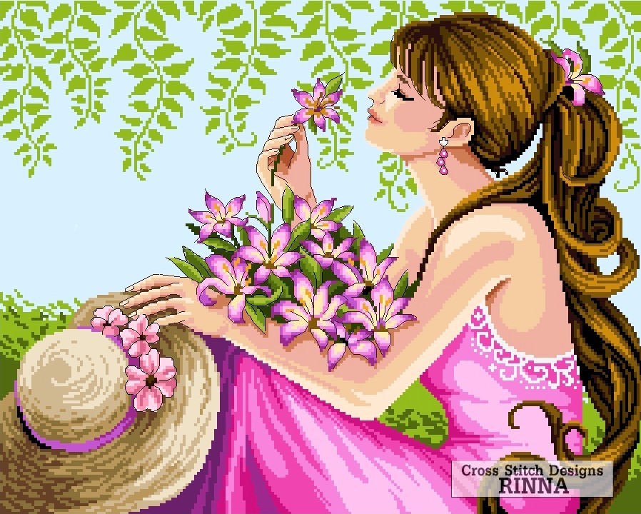 Lady of Spring (Pink Dress) - Cross Stitch PDF Downloadable Pattern