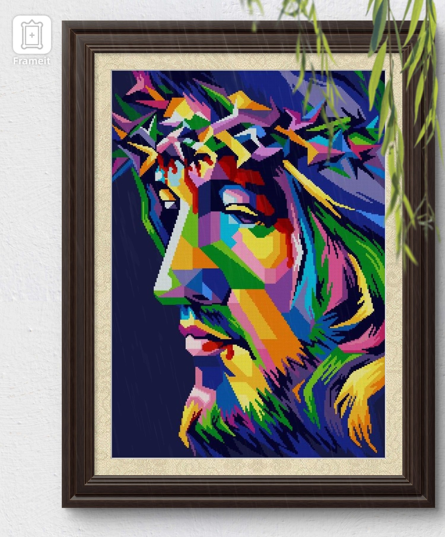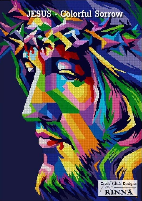 Religious Icon JESUS Colorful Sorrow Art - Cross Stitch PDF Downloadable Pattern