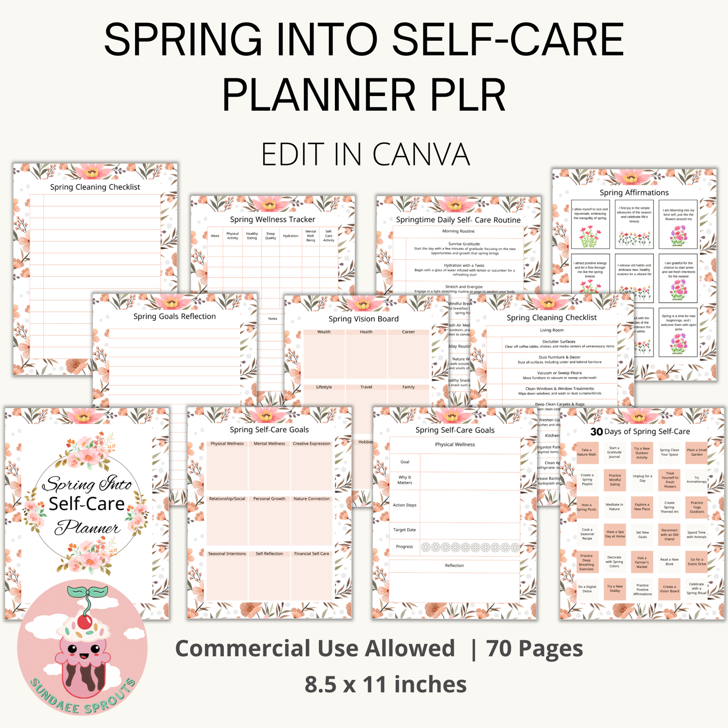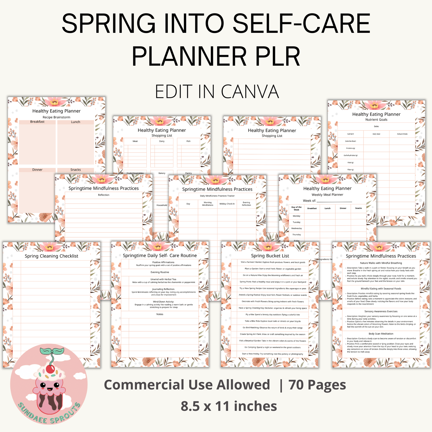 Spring Into Self-Care Planner PLR