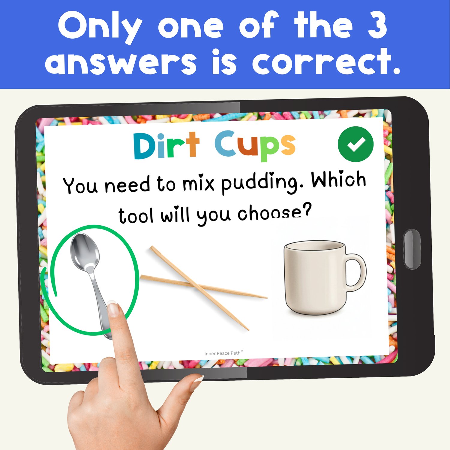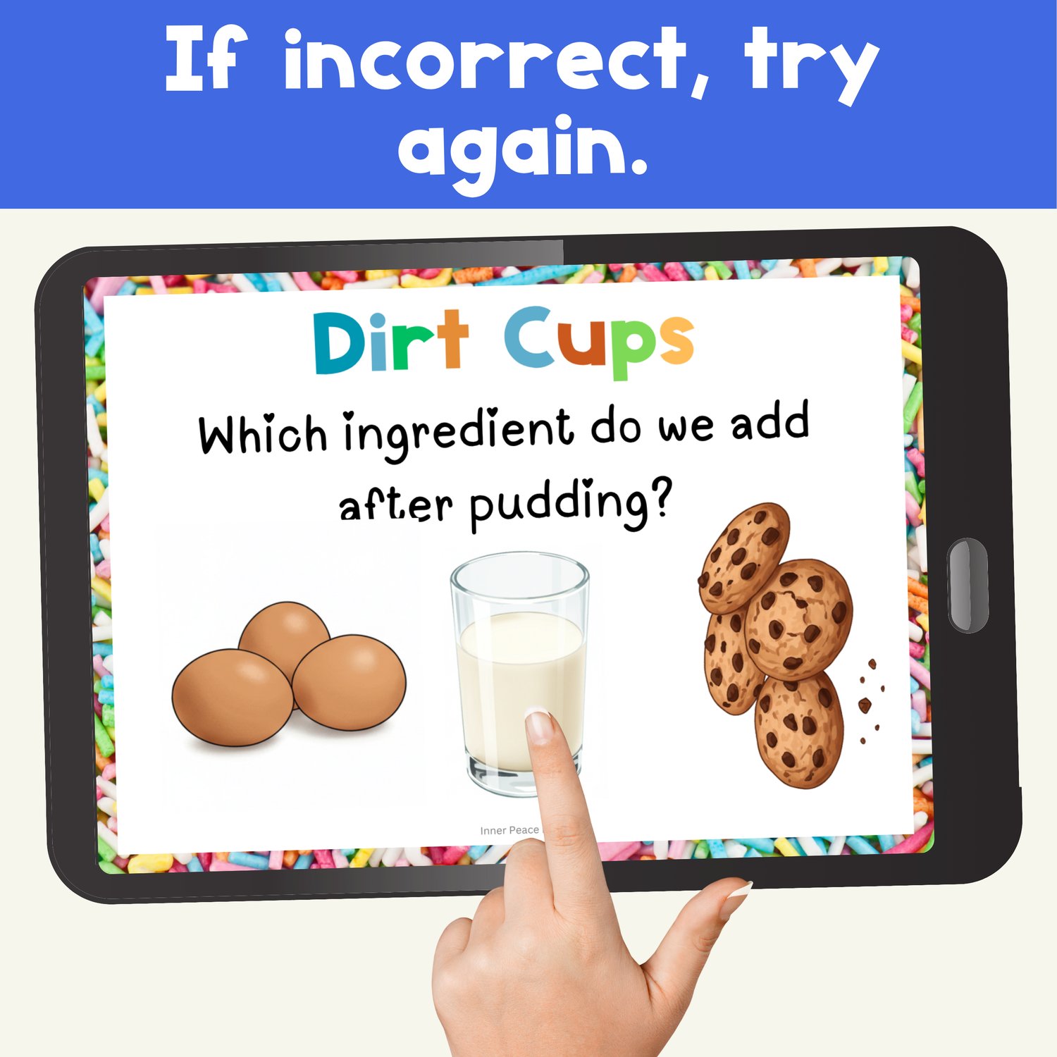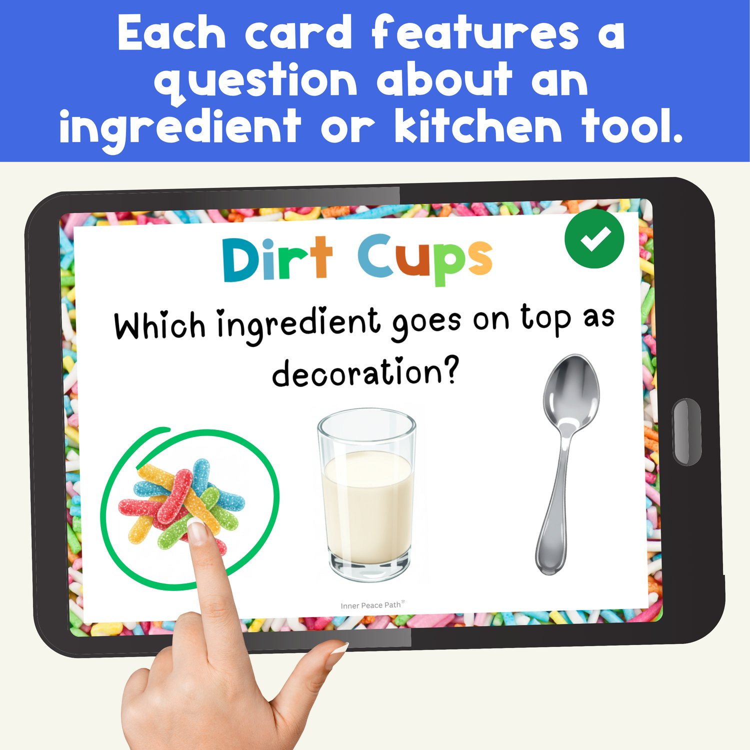 Teach cooking comprehension with these interactive Dirt Cups Ingredient & Tool Boom Cards!