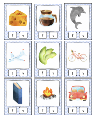 Cartes à pinces sur la confusion des sons.