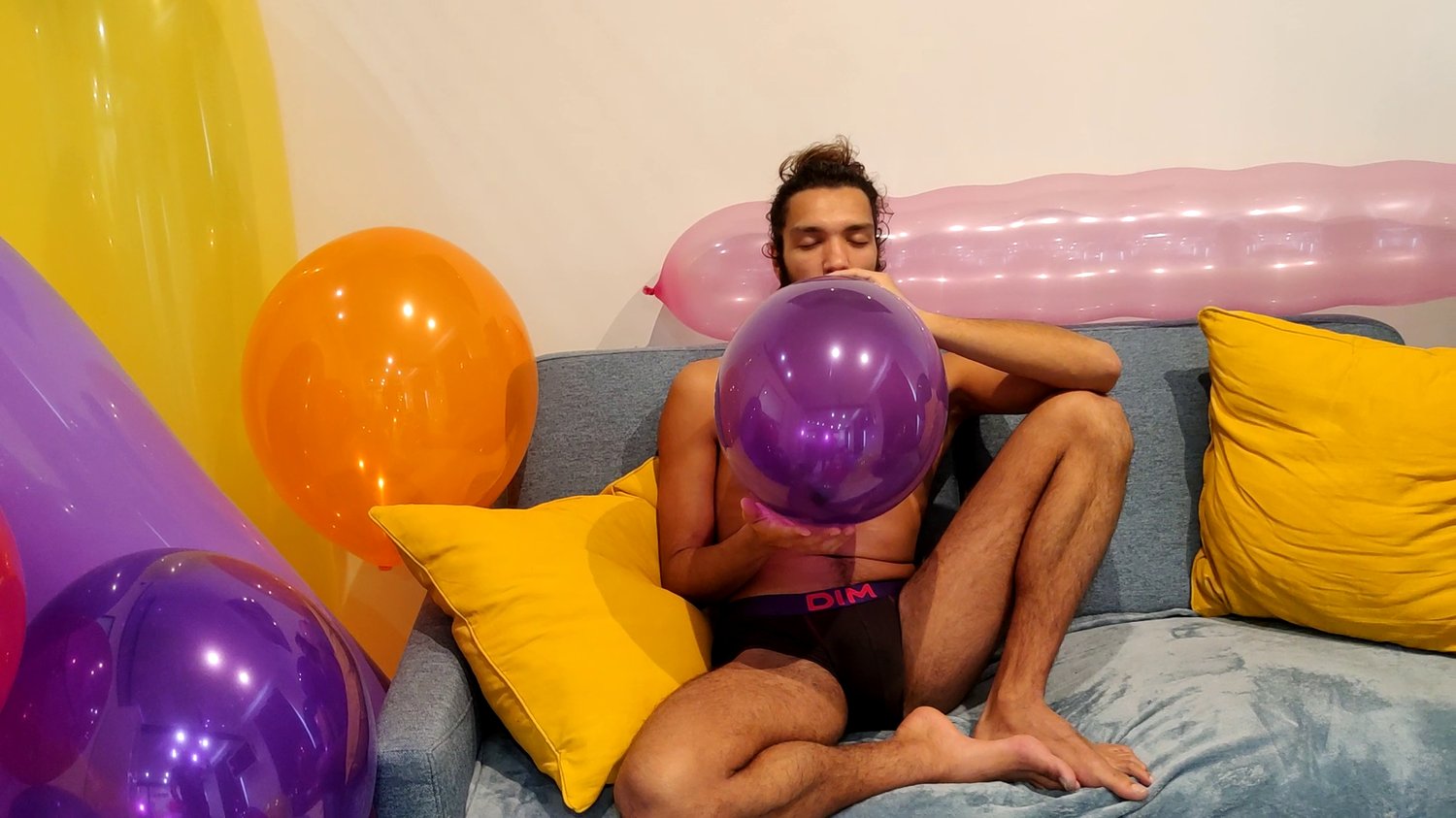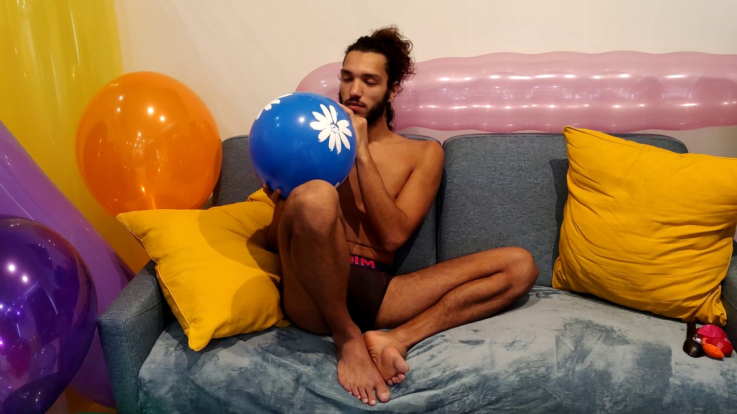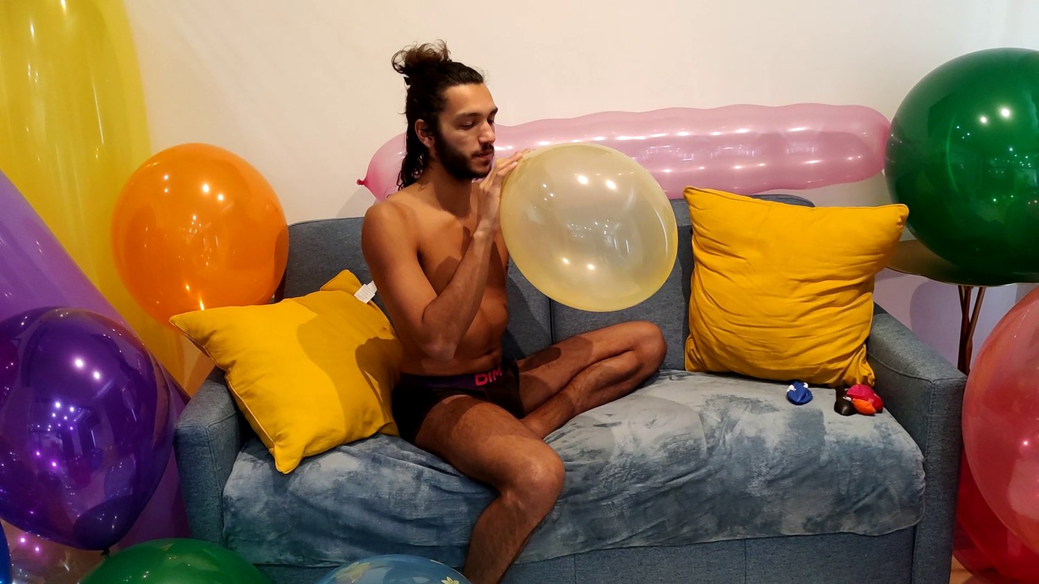 In this video the realy hot Nour , a french guy from Marseille, blow to pop 3 balloons.