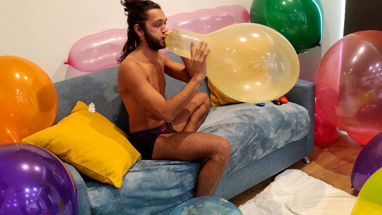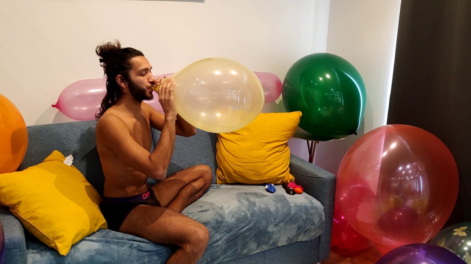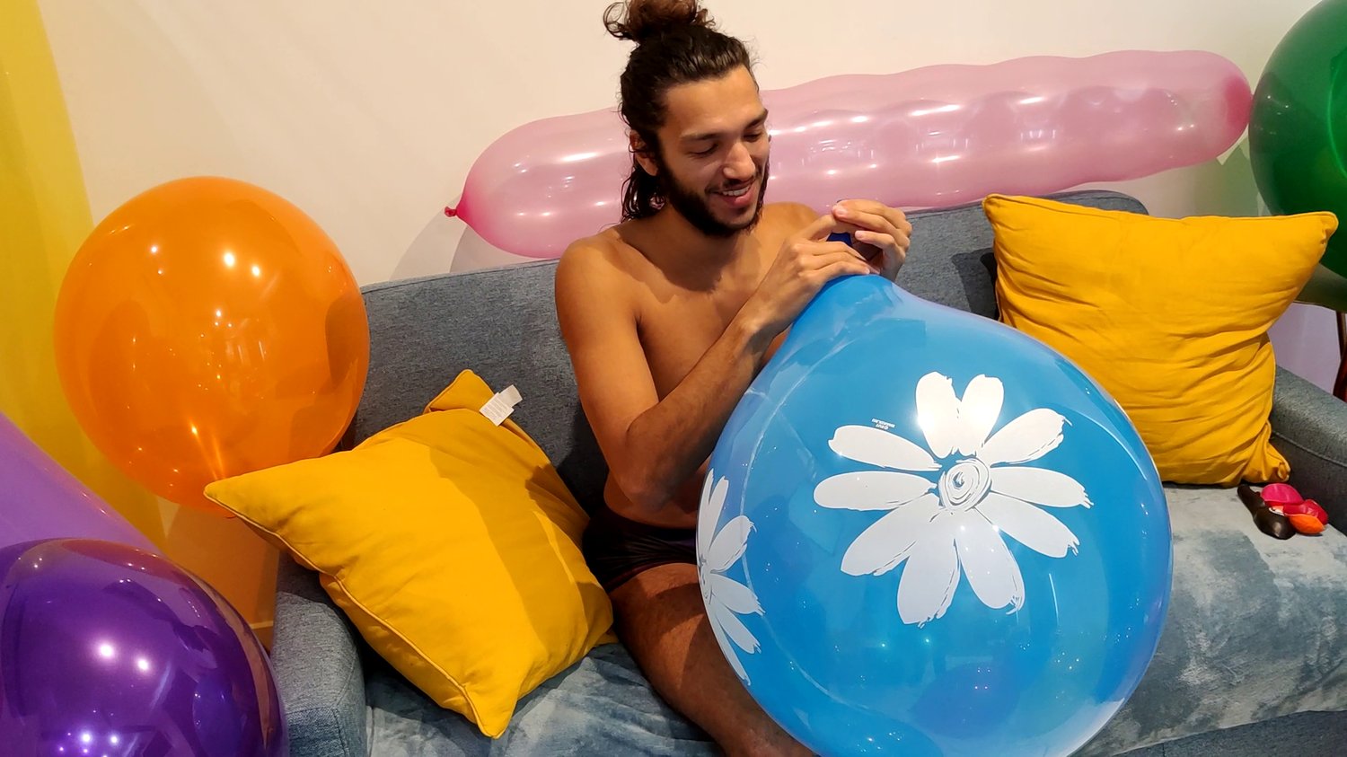 In this video the realy hot Nour , a french guy from Marseille, blow to pop 3 balloons.
