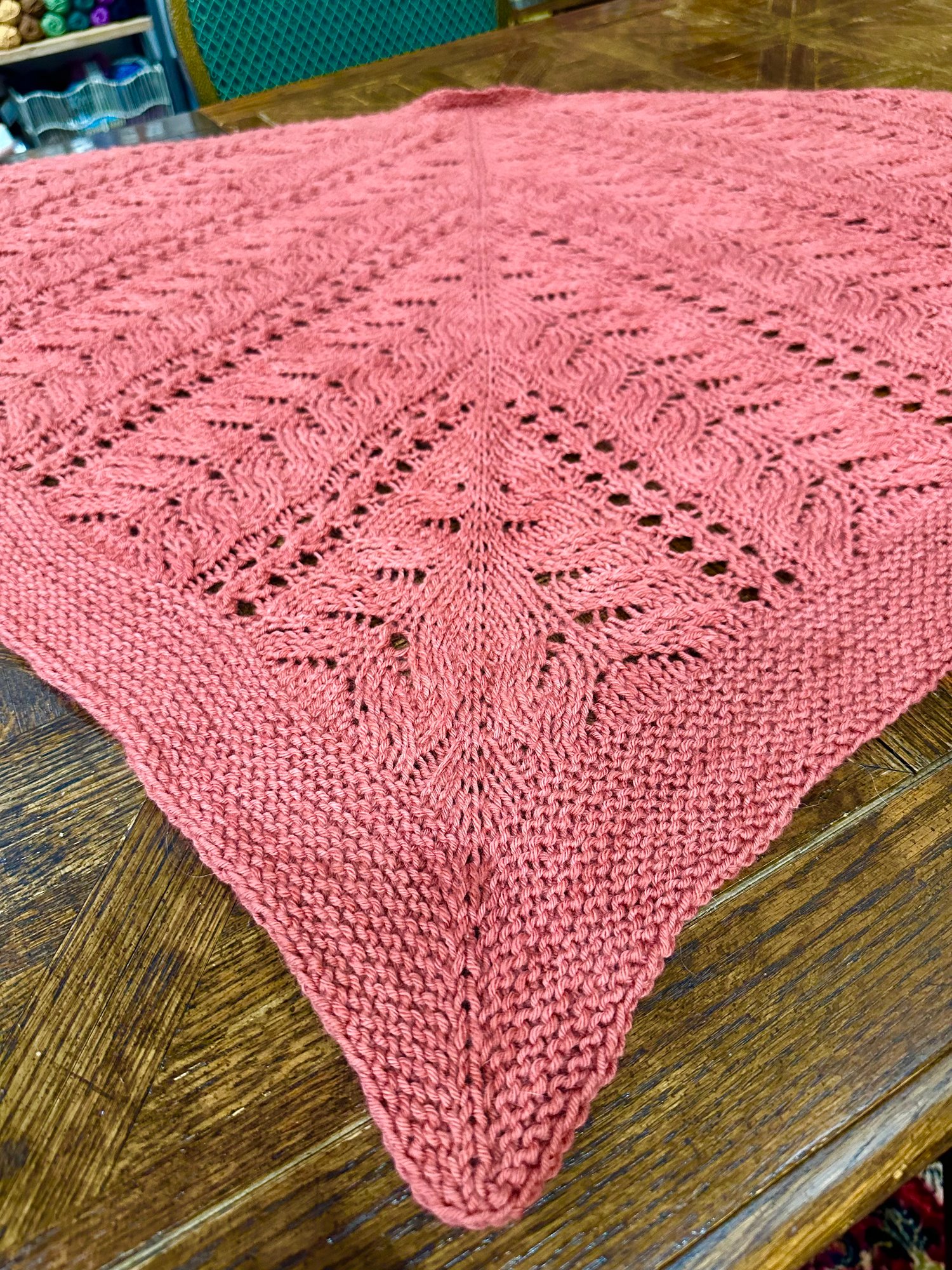 Written in one size, this classic DK-weight triangle—with both written and charted directions—is perfect for a confident beginner but interesting enough to keep advanced knitters happily engaged.