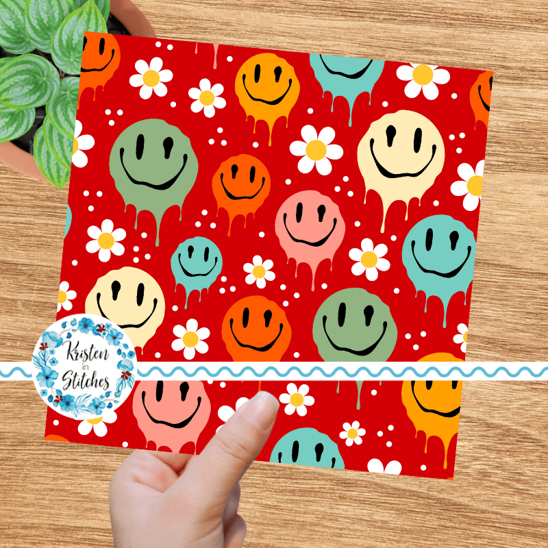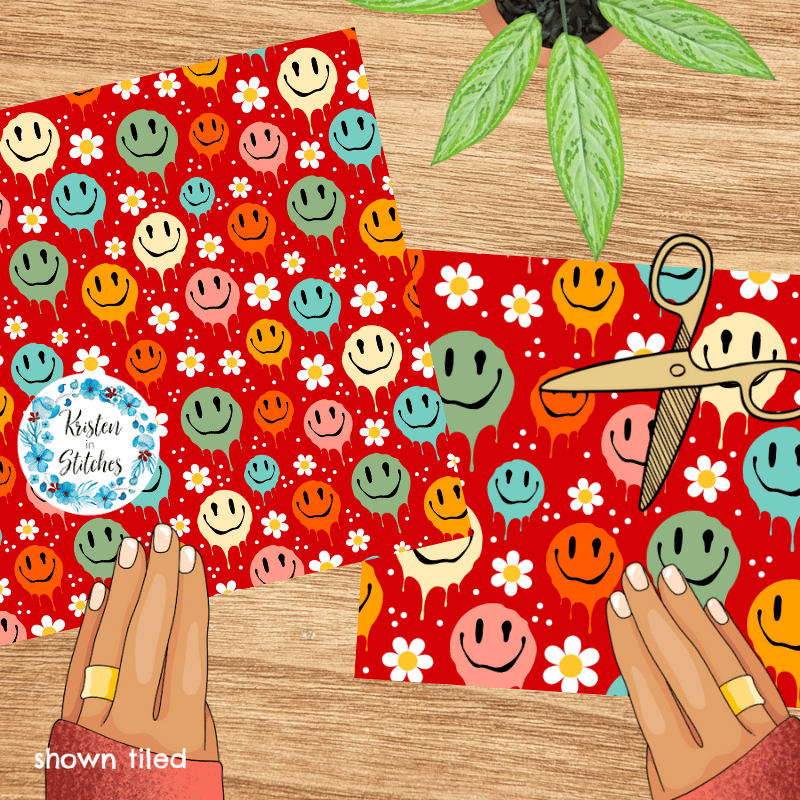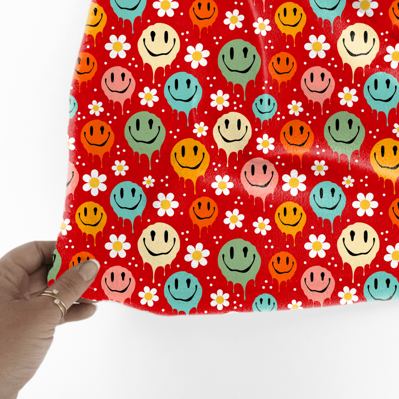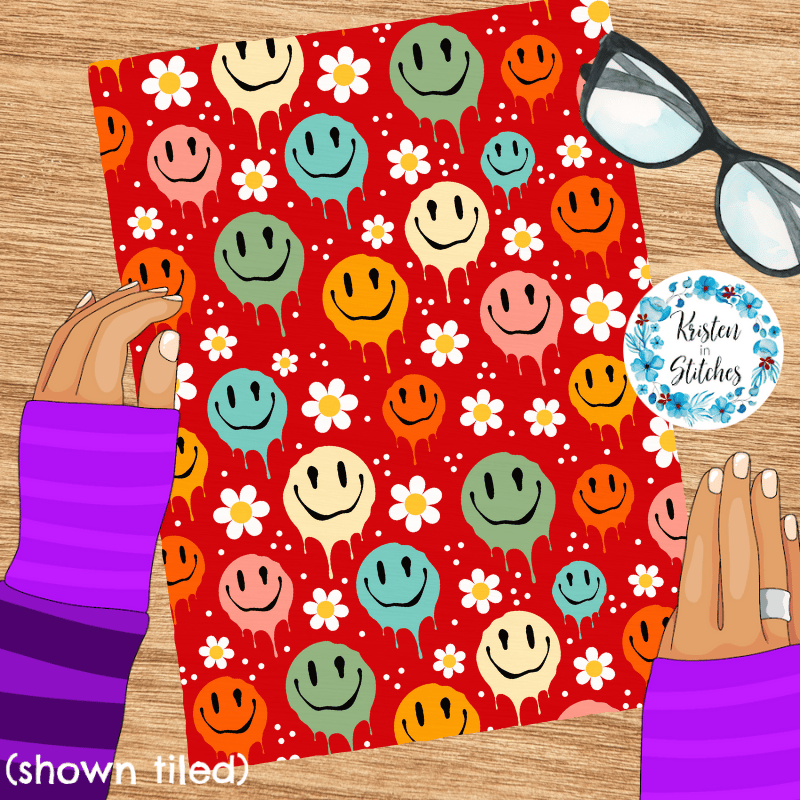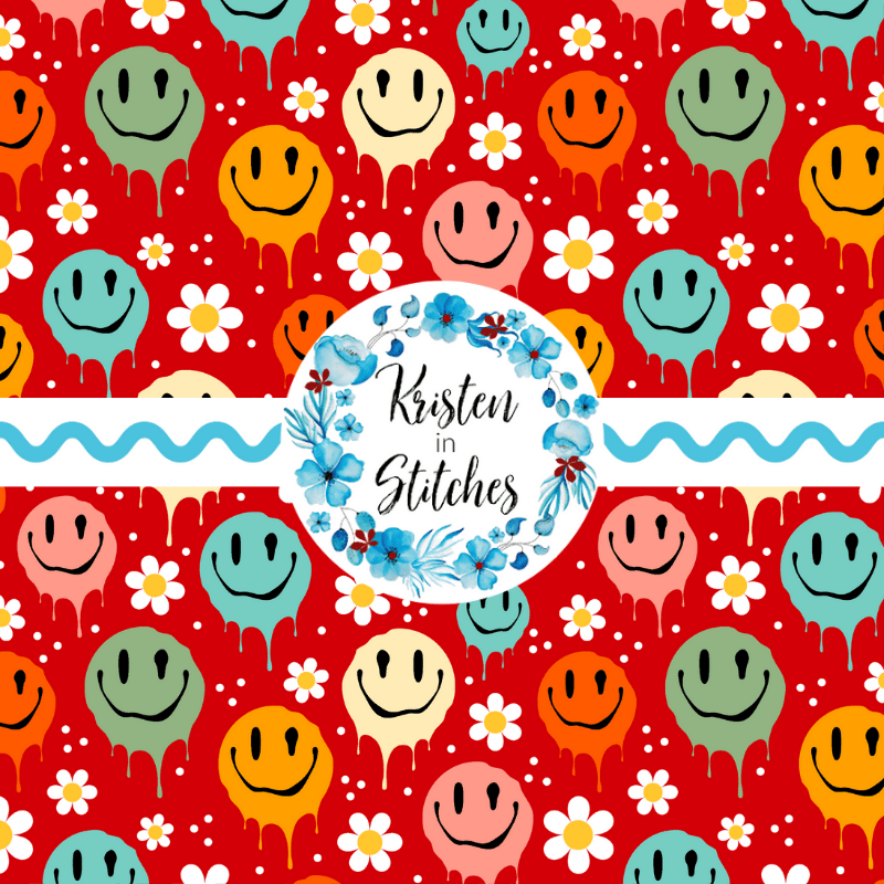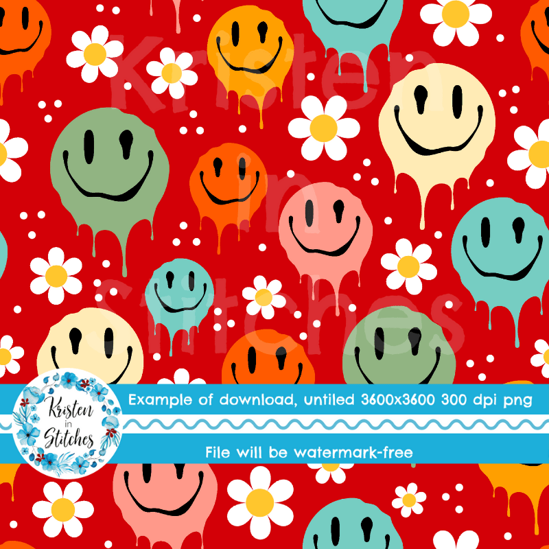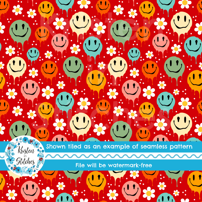 Drippy Melty Happy Faces Seamless Pattern, Red