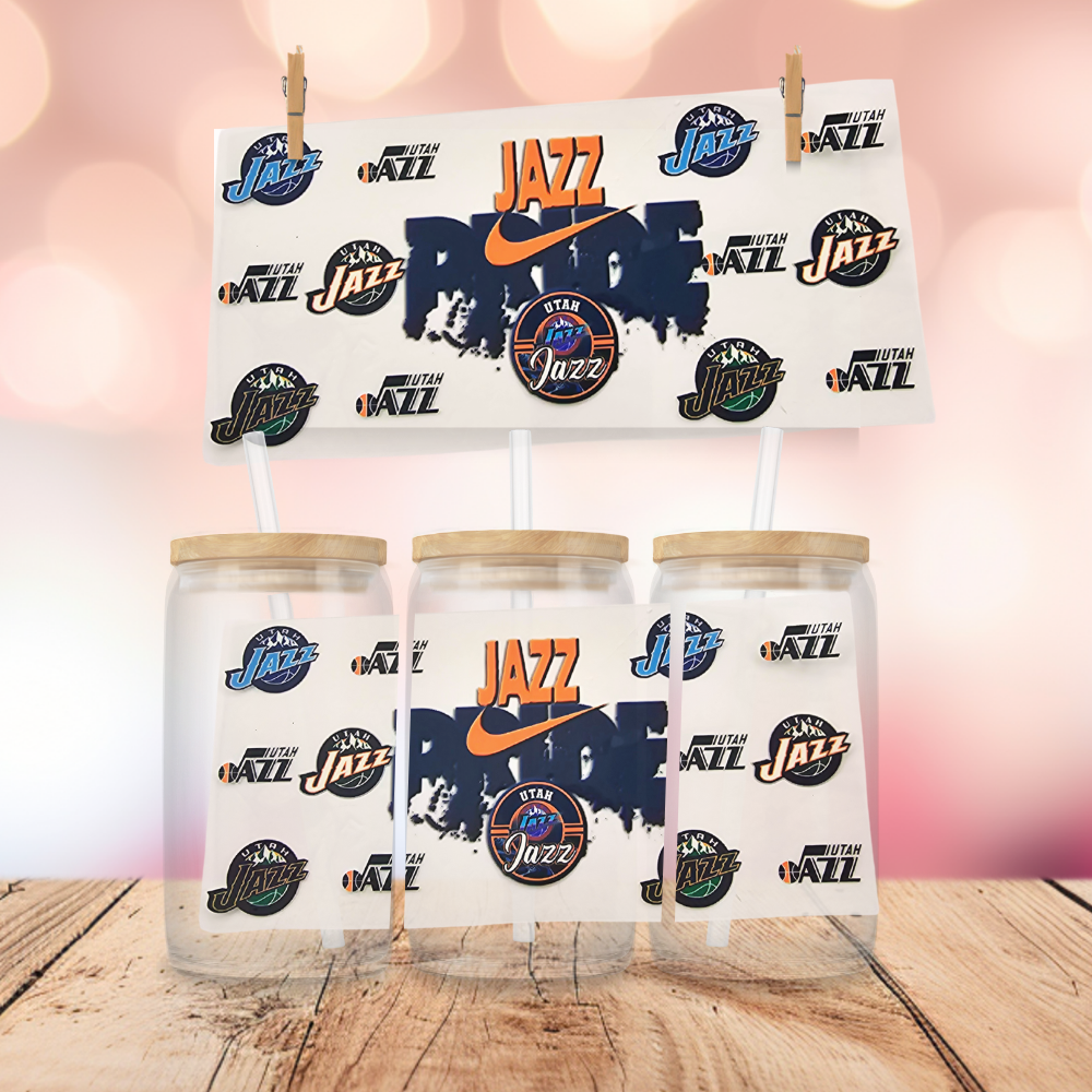 Celebrate your team with rhythm and power using the Jazz Pride Basketball Wrap! Designed to fit 16 oz Libbey glass cans or tumblers, this wrap features bold Utah Jazz–inspired graphics in vibrant team colors—perfect for fans who love their basketball with a little flair. Whether you’re courtside or couch-side, show your loyalty with every sip.