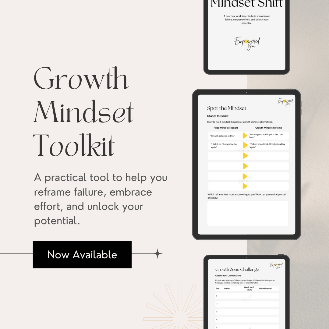 This powerful worksheet will help you shift from a fixed mindset to a growth mindset — so you can stop holding back and start showing up fully.