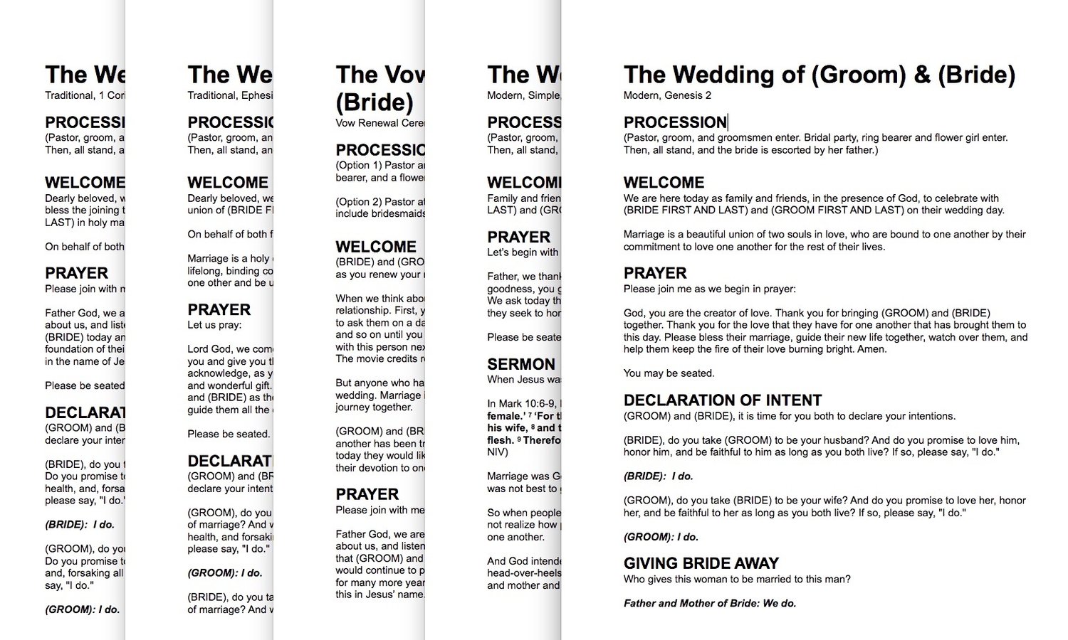 Each sermon comes as a fully editable Word document (.docx) so you can quickly adapt it to fit the couple and the ceremony.