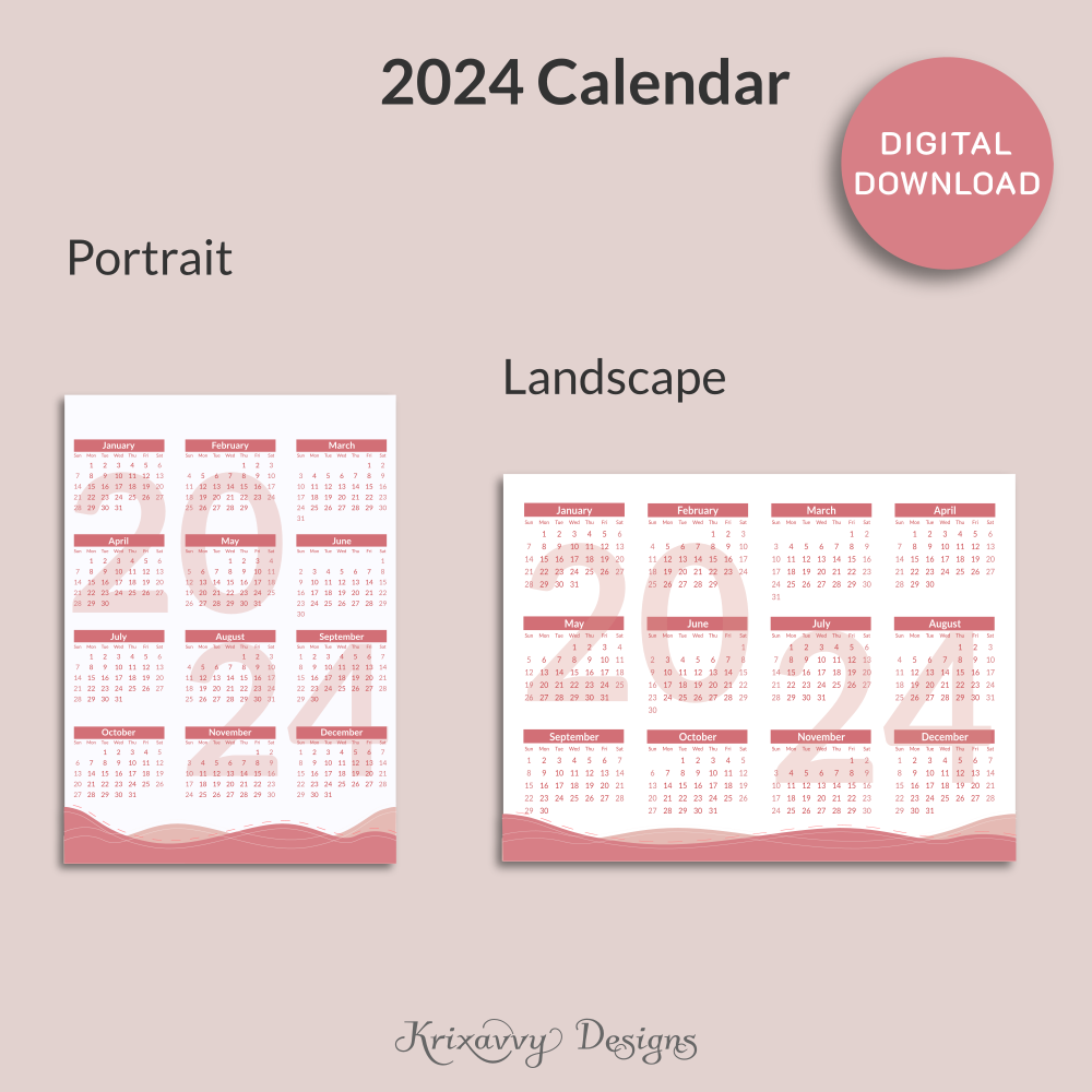 2024 Printable Display Calendar (Pretty in Pink)