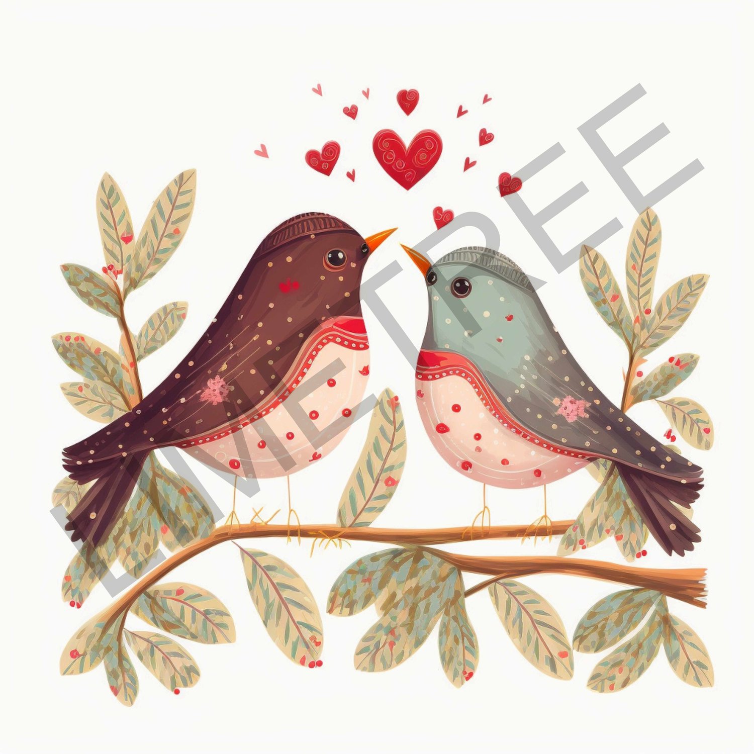 4 X Digital Love bird valentines prints 300 DPI can be used for any crafting printing project