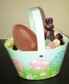 Un joli sac de Pâques destiné aux enfants pour partir dans le jardin et ramasser 500g environ de chocolats emballés séparément pour les cacher dehors.