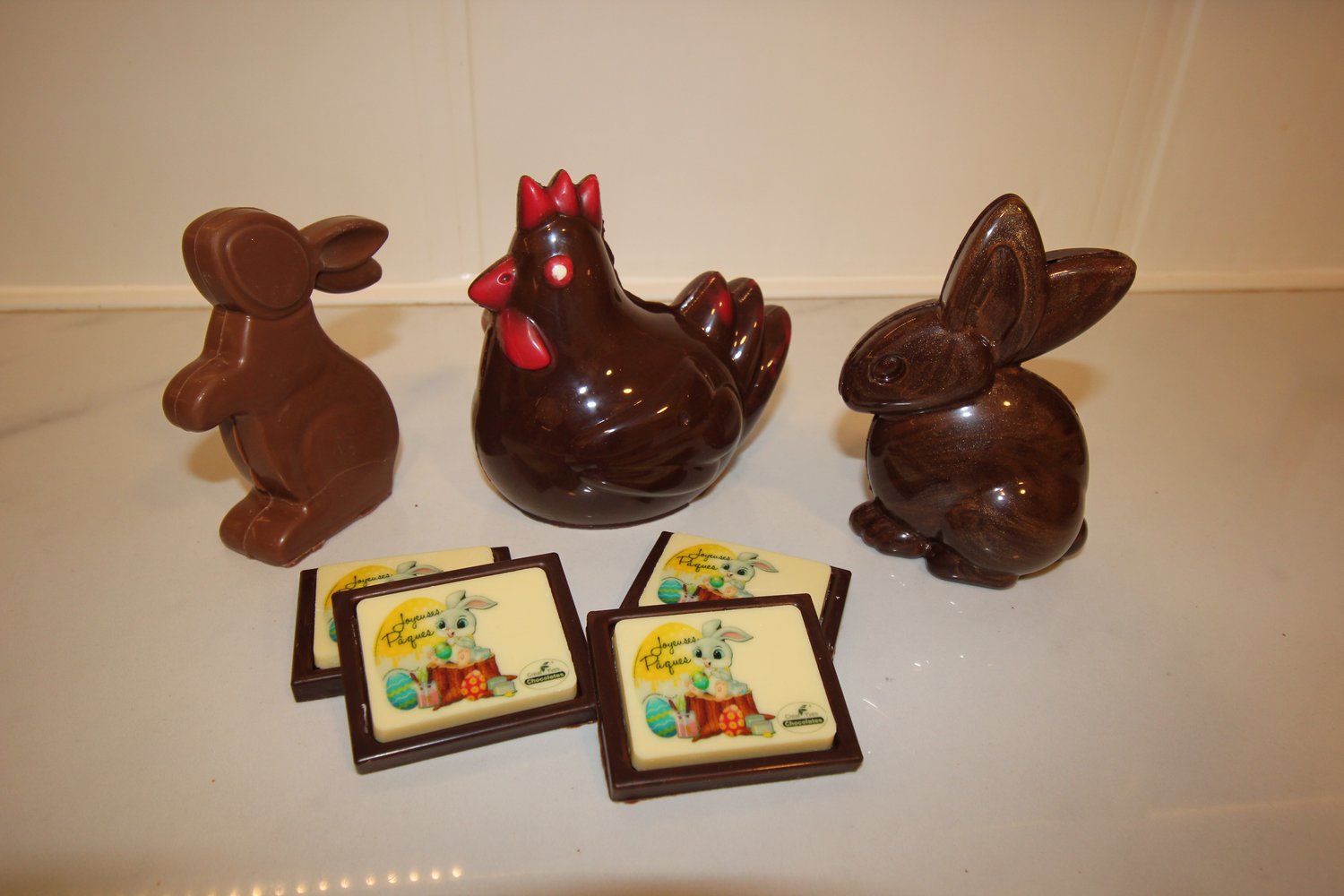 Des truffes colorés croustillantes, de la friture, des pralines et 2 gros moulages etc...