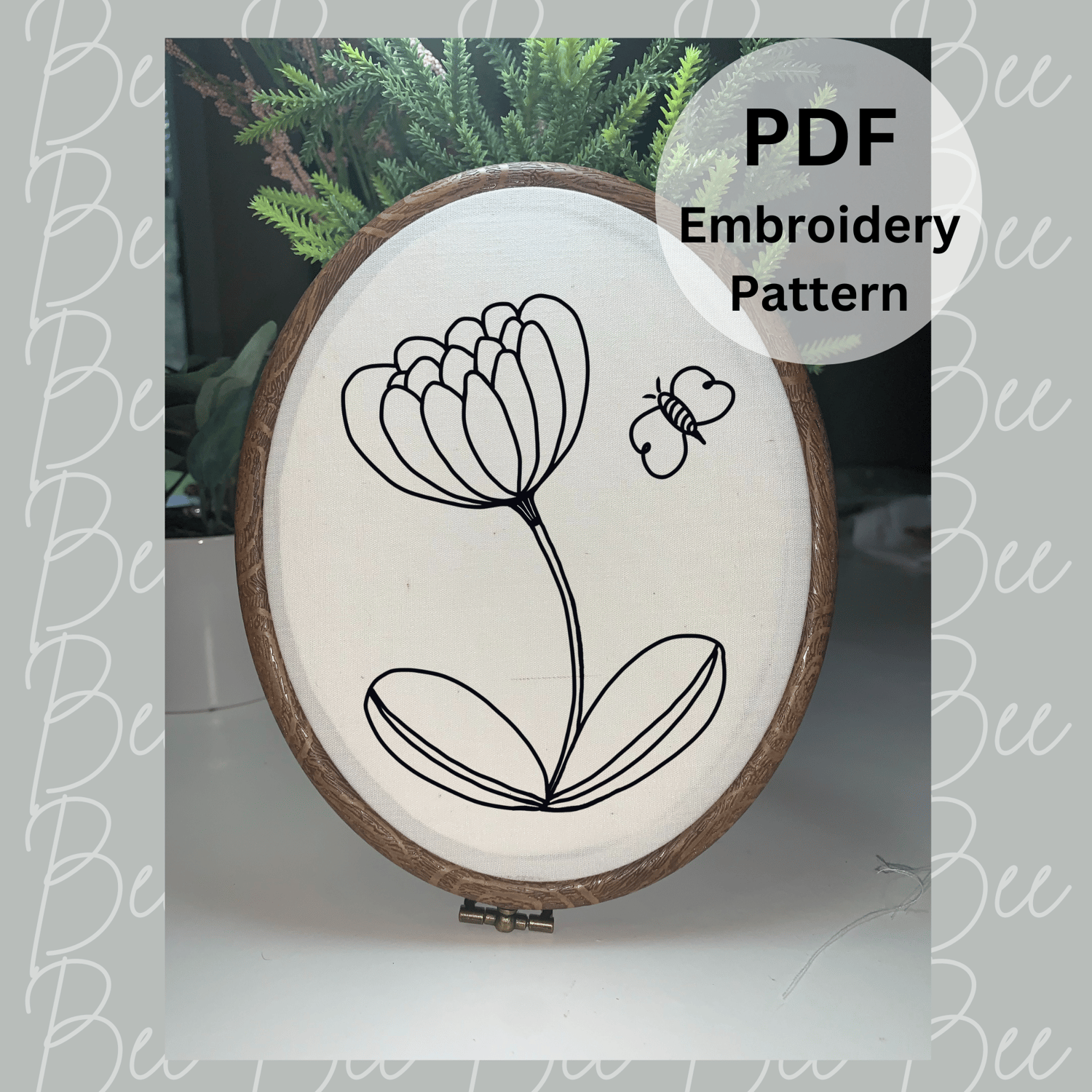 Hand-Drawn Flower & Bee Embroidery Pattern Pack: 6 Sizes! Instant Download