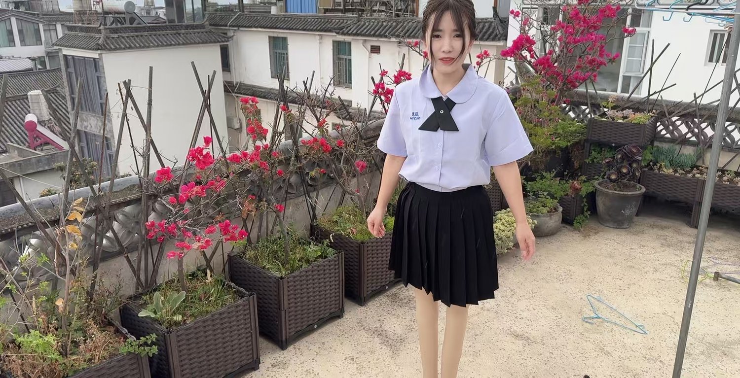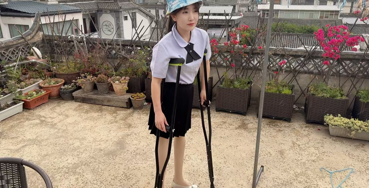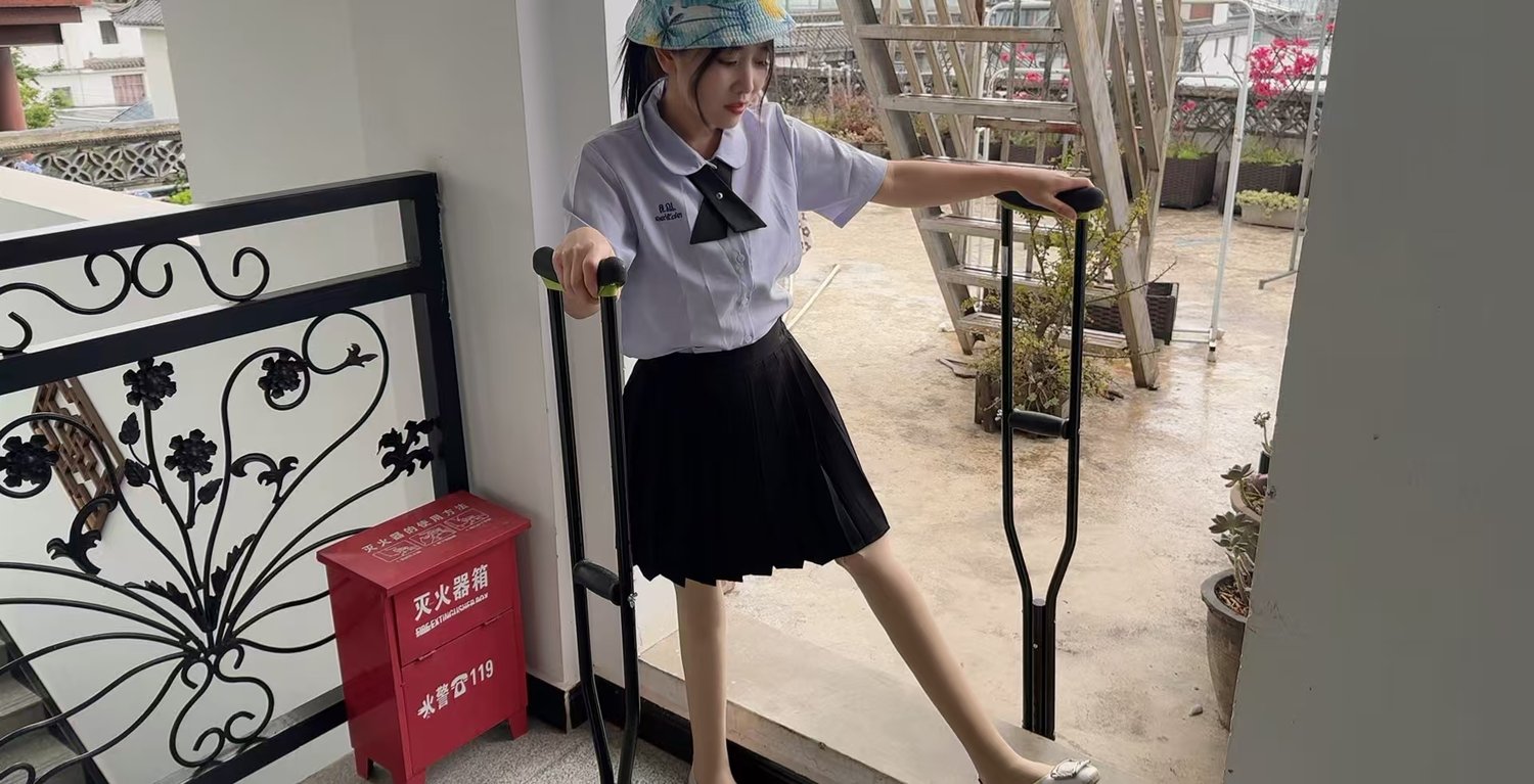 Sally was home alone today, feeling a bit excited. She pulled out her favorite JK uniform and slipped it on secretly. Looking in the mirror, she felt very satisfied. However, the phantom pain in her residual limb was causing her some discomfort, so she resorted to self-massage to ease her pain.