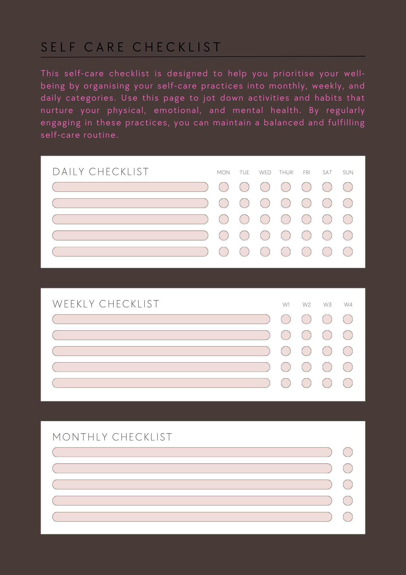 🧘♀️ Daily & weekly check-in sheets
