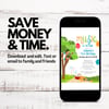 ❸ Make your changes and edits on Canva → Save → Download as PDF or JPEG → Print or text to family and friends!