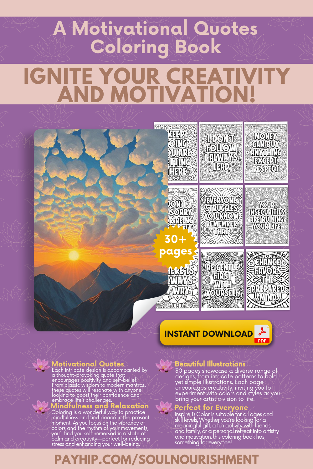 Dive into the world of positivity and creativity with Inspire & Color! Let the combination of motivational quotes and beautiful illustrations elevate your mood and inspire your journey.