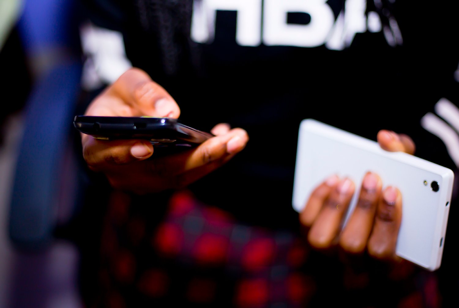 African woman looking at a mobile phone