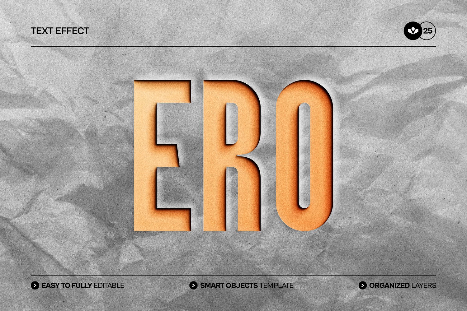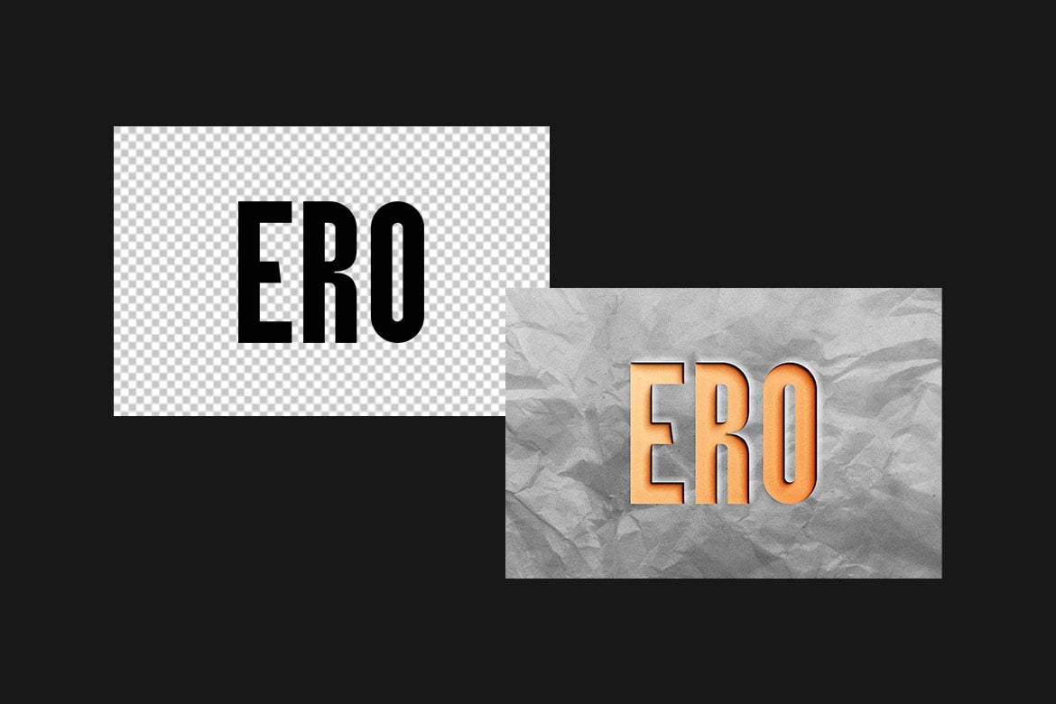 Creates a clean and modern cutout illusion with depth and contrast. Subtle shadows and smooth edges enhance the 3D appearance, making the text look as if it’s physically embedded into the surface.