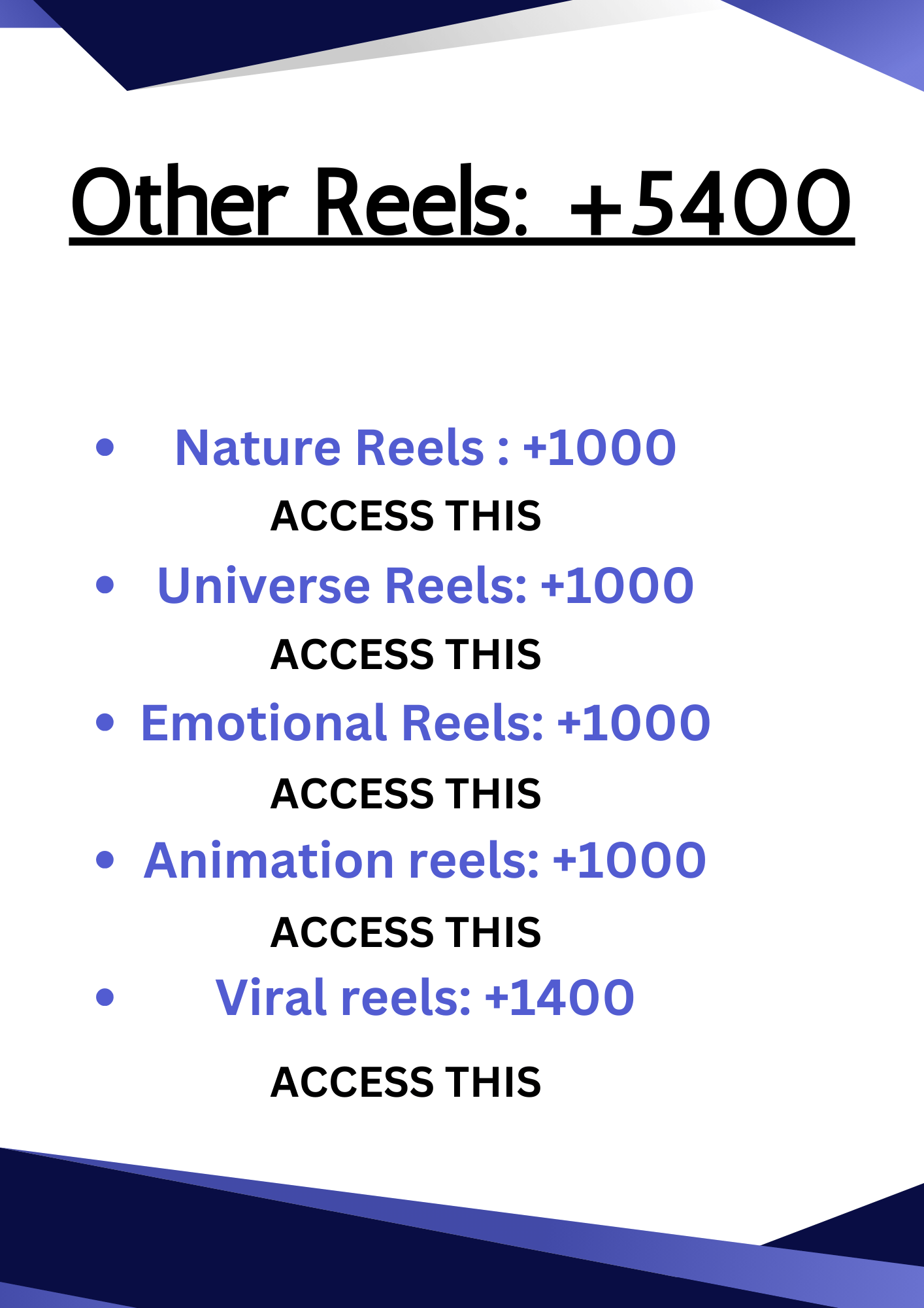 There are +5400 Other Reels which include nature, animal , luxury , cars.