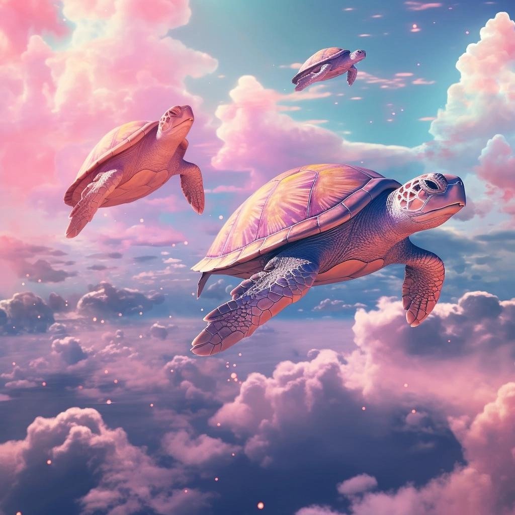 Let your imagination fly with these beautiful & majestic flying turtles. Great for journal covers or any other merch you may want to design.