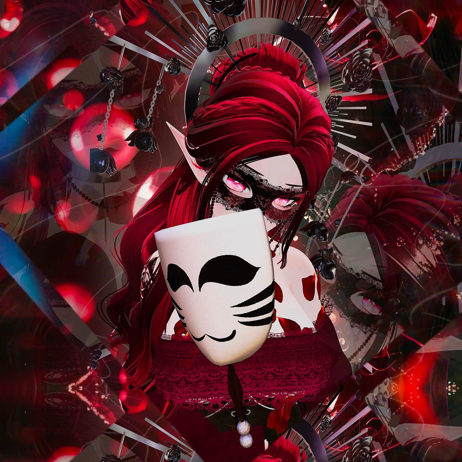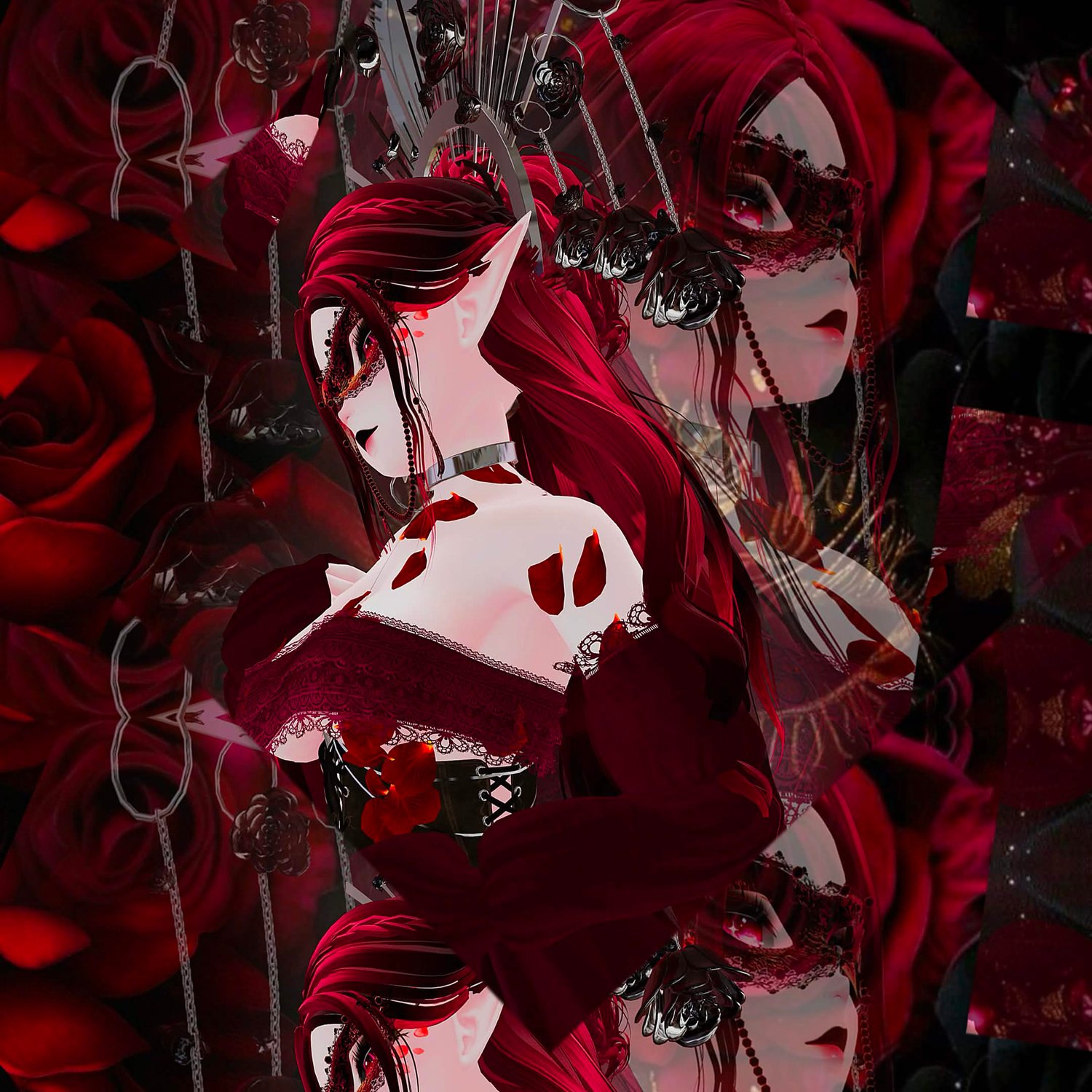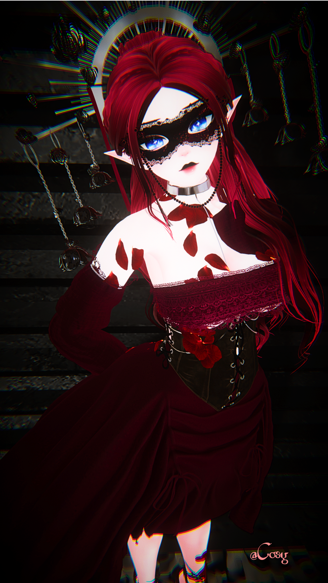 Pretty Face Textures By YingYany , Matt Caps By Awmi,Briistormvr,Peep's Boutique (fake index by Peeps) , Starlight Head By Starlynn , Base By Zinpia , Gogo Loco By Franada , Makeup By Kisssanity , Eye Lashes By Toffee , Hair texture By Saikura , Hair and dress set and rose set By Nessy 3D, Flow Toys By Kitionsgrove, Mask Rose face By Taia , Rose heels By NepHub , Face mask By Cringy , Mand mask By SteadySniper , Rose bell crown By Lovecusty Lil' Shop , Tattoo By Maddiiee , Body Chain By Aantara