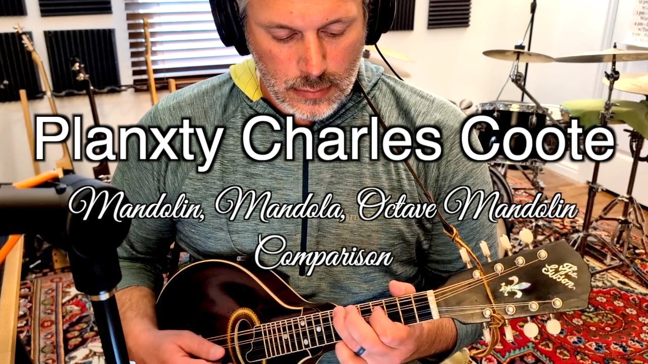 Turlough O'Carolan's tune "Planxty Charles Coote" arranged for solo mandolin (mandola, octave mandolin, etc.) Sheet music contains standard notation (treble clef) and mandolin tablature. 2 pages.