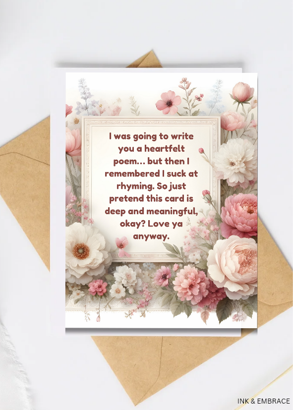 'I was going to write you a heartfelt poem... but then I remembered I suck at rhyming. So just pretend this card is deep and meaningful, okay? Love ya anyway.'