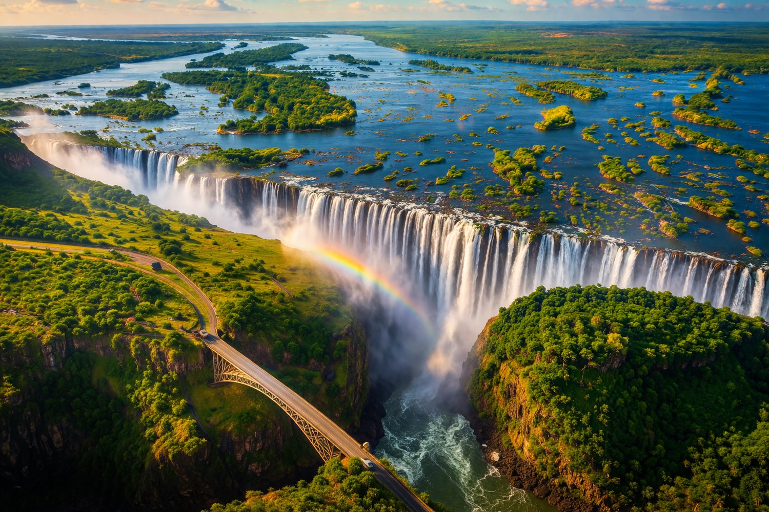 Transform your space with the breathtaking beauty of Victoria Falls—captured from a stunning aerial perspective that showcases one of the world’s greatest natural wonders like never before. This premium wall art features cascading waterfalls, lush landscapes, and a vibrant rainbow cutting through the mist, creating a powerful and calming visual experience.