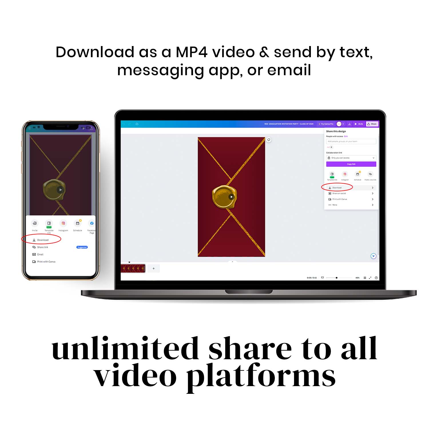Invite your guests to your graduation event with a unique and modern touch using this special animated graduation party invitation templates. With the convenience of a video text message, it’s quick and easy to send. This template provides instant access without any need for installation.