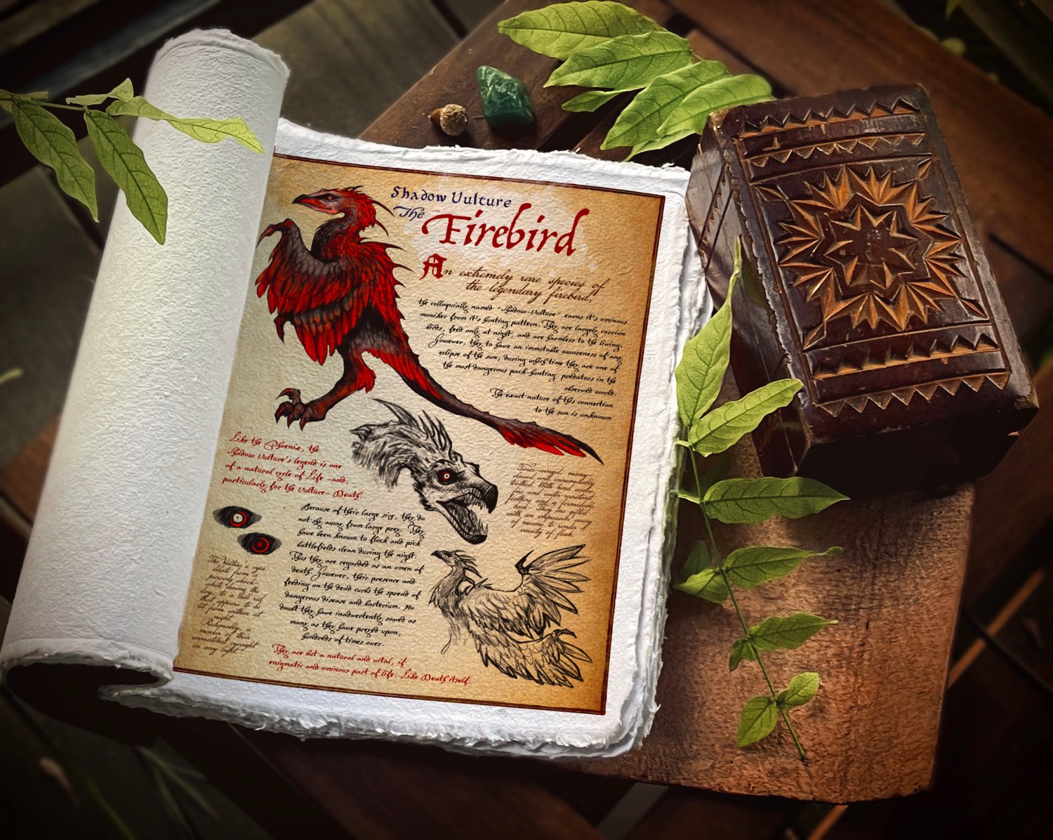 Phoenix Art Print & Editable Fantasy Creature Bestiary Page Template