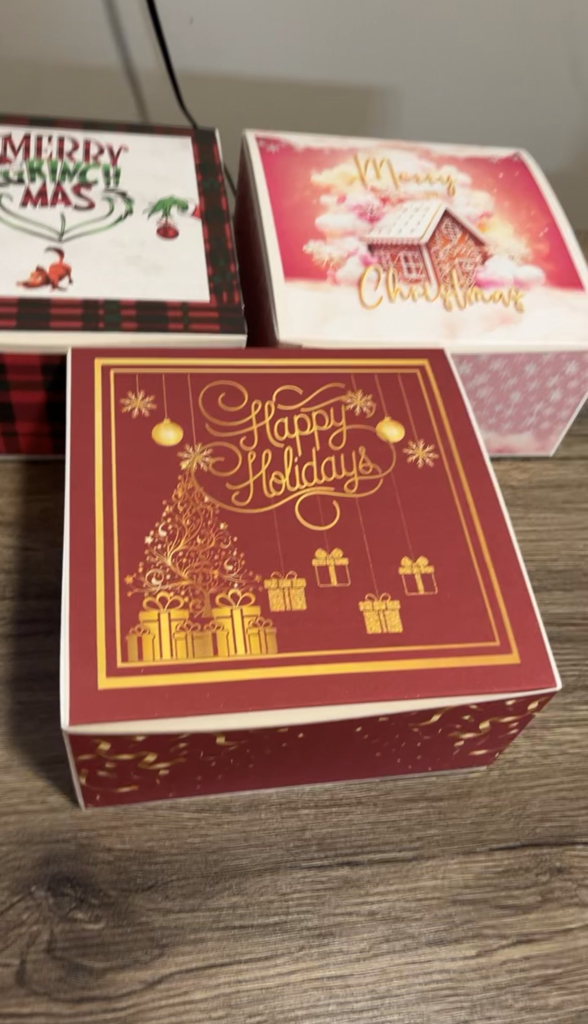 Christmas gift boxes designed to uplift and encourage—featuring elegant packaging, warm tones, and thoughtfully curated items that celebrate Christmas. Included themes are a classic holiday, gingerbread house and green monster. Boxes can be purchased empty or filled. Filled boxes include matching chip bag, juice bottle/pouch, water bottle, hot cocoa, and an ornament.