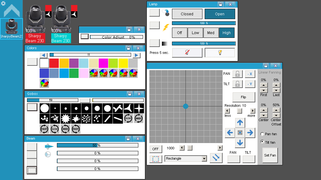 Librería para Freestyler DMX del Cabezal Móvil Chino "Sharpy" V4 - Beam 230 ó Beam 200 (1 Pan, 2 Tilt, 8 Dimmer).
