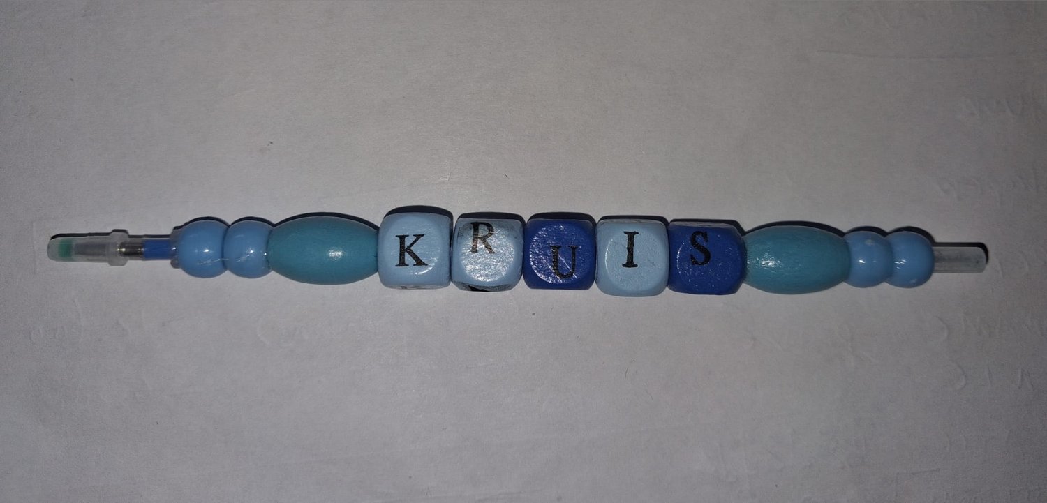 Blauwe pen met tekst Kruis