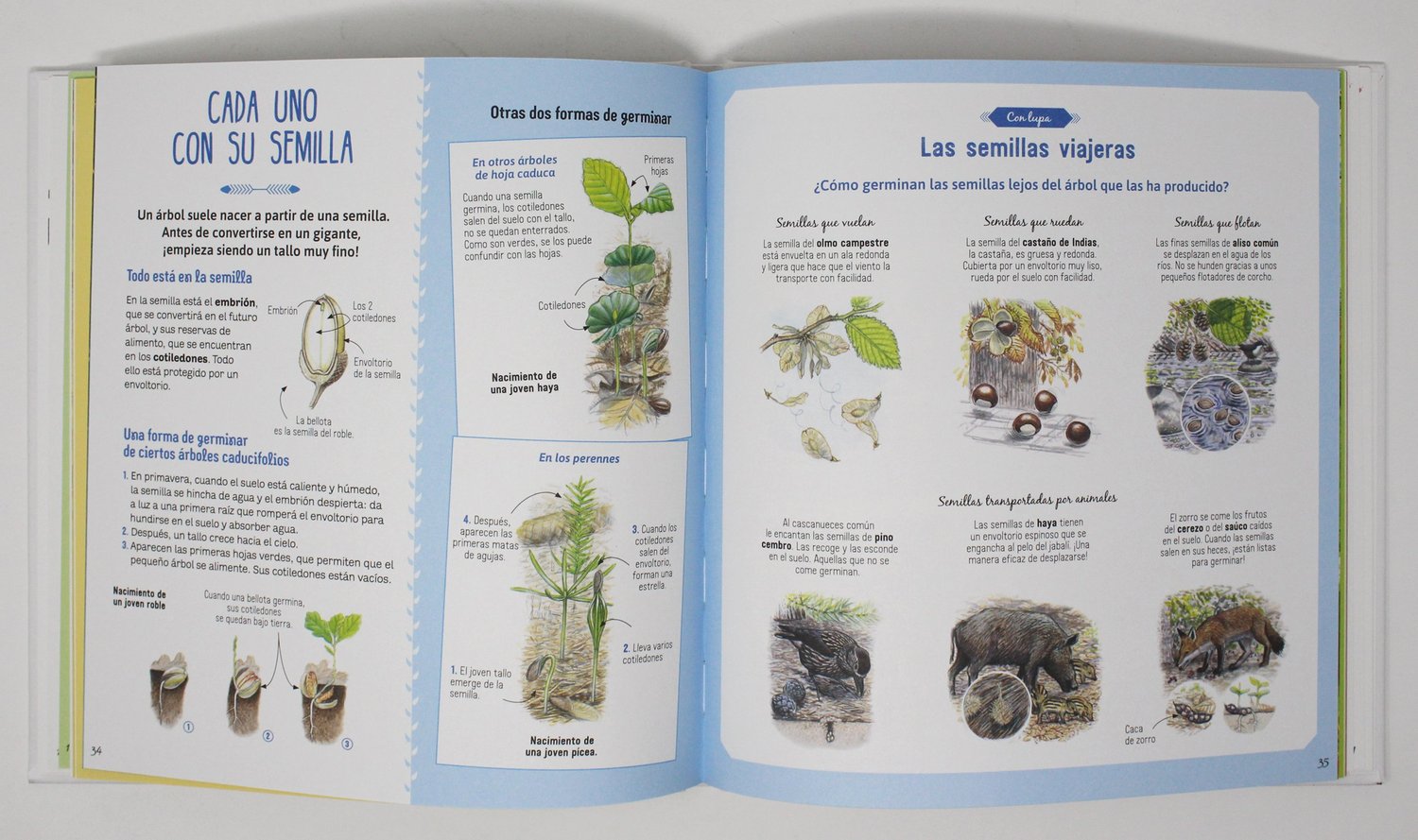 • dobles páginas para conocer diferentes tipos de bosques y paisajes,