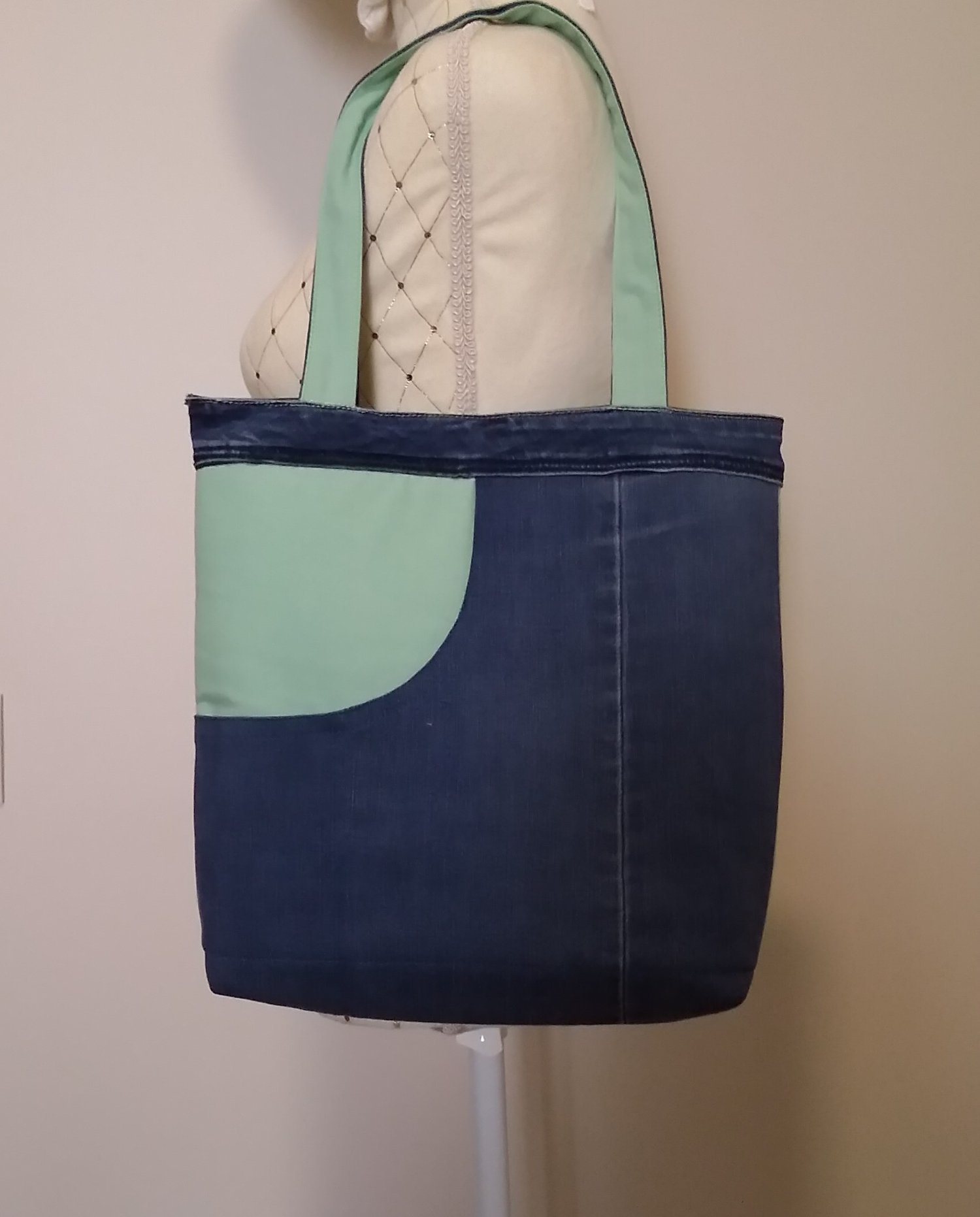- Handmade from reused denim — each bag is crafted using second-hand materials, reducing textile waste