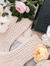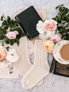 Finished sock dimensions: 8” (20.5 cm), 9.25” (23.5 cm), 10.25” (26 cm) circumference (Note: most people like their socks snug, so choose a finished sock size that is slightly smaller than your actual foot)