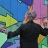 The marlisle technique used for the piece gives an interesting result, so similar to some raw drawing on the walls, when the paint is already fading, but the shapes are still visible.