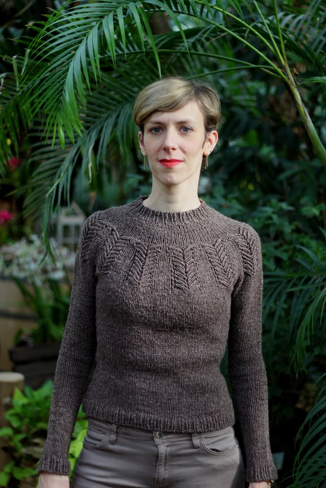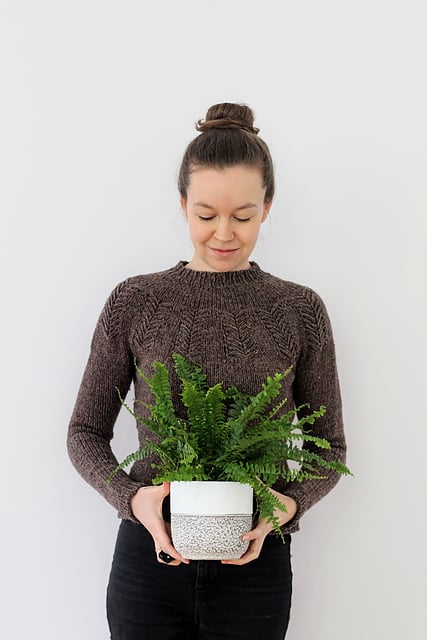 This product is a PDF of a knitting pattern, not the finished product.Perfect for a stroll through a palm house in the winter months , Areca is a top-down seamless yoke sweater with an elegant cabled yoke detail, inspired by palm leaves, and…it’s #sizeinclusive ! The high neck creates a unique silhouette, with short row neck shaping for an ideal fit, and with both written and charted instructions for the yoke detail, to make this an accessible pattern for knitters of all levels! Knit up in your favorite Aran/Worsted weight yarn, this pattern is a relatively quick knit that beautifully shows off the naturally dyed shades of Oysters & Purls Yarn.