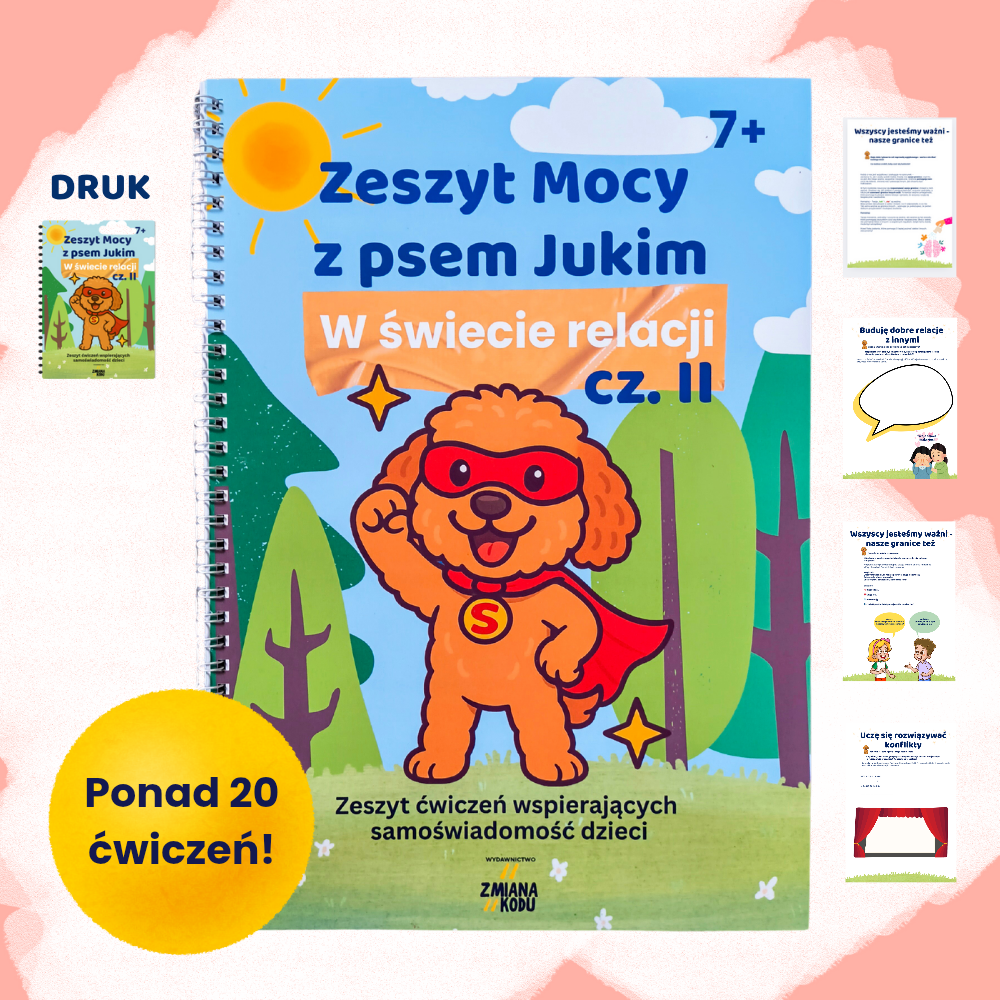 Druga część „Zeszytu Mocy z psem Jukim” to pełna empatii i ciepła kontynuacja podróży rozwojowej