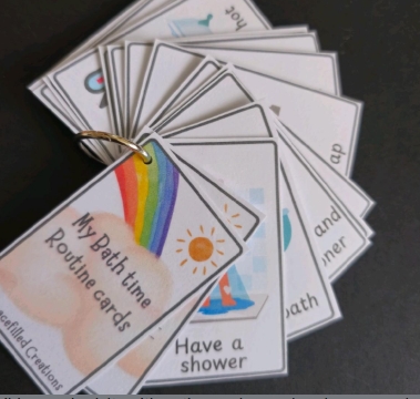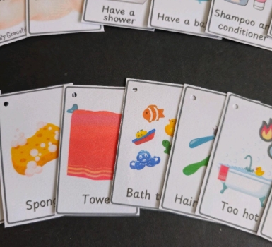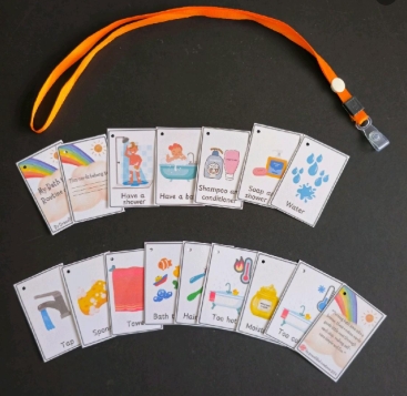 The "My Bath time routine Cards" are an excellent tool for special needs children and adults with autism and speech delay. These cards can help with communication and understanding, making it easier for them to participate in daily activities. The cards are also non-verbal, which means that they can be used by people who are not able to speak or communicate through speech.
