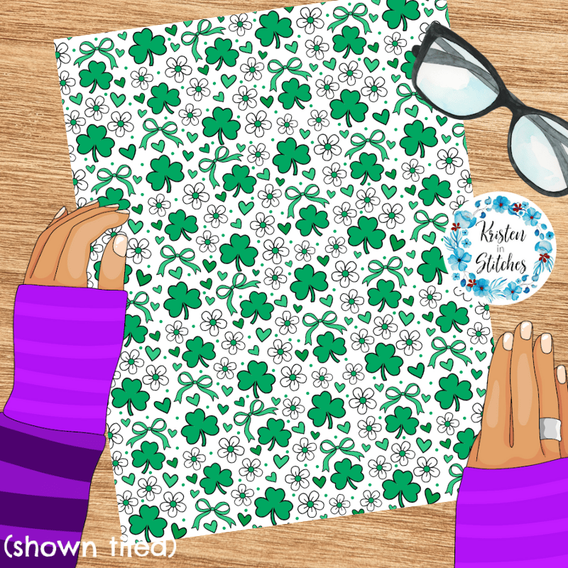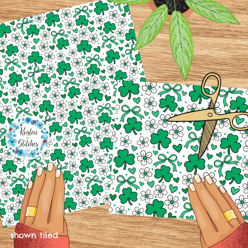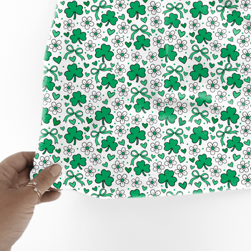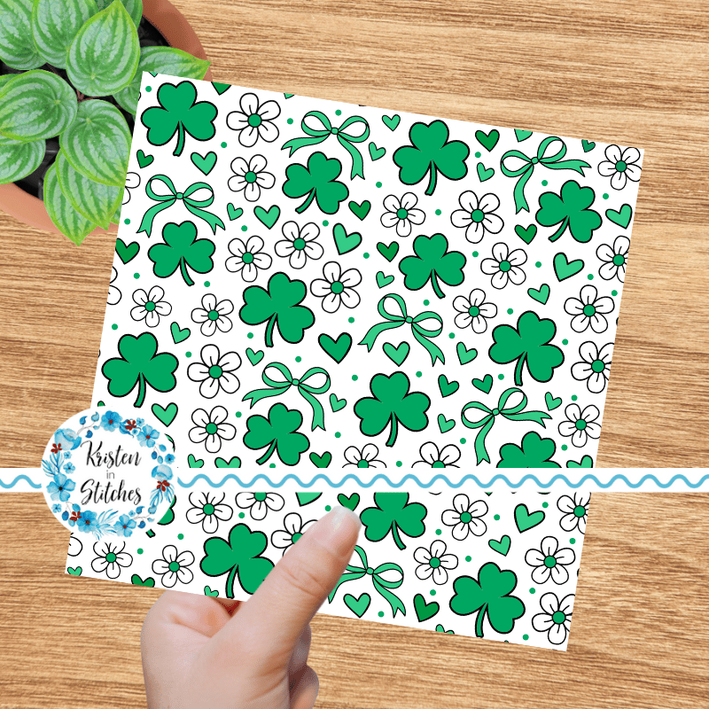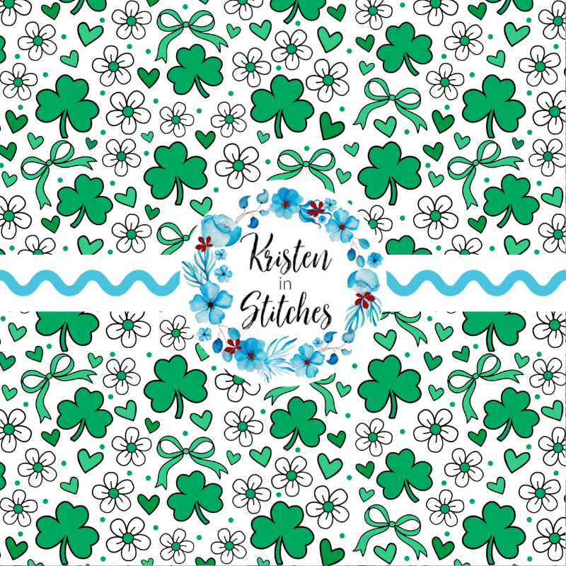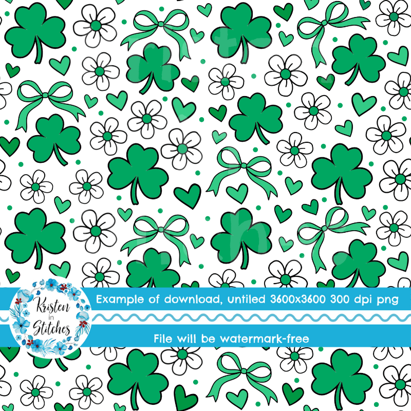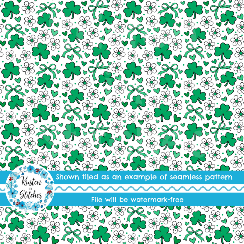 Shamrock Daisy Floral St. Patrick's Day Seamless Pattern, Coquette Bows and Hearts