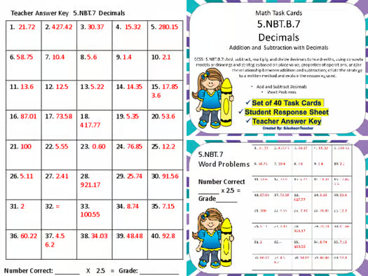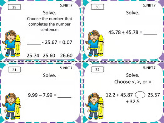 5.NBT.B.7 Math Task Cards Addition and Subtraction Decimals